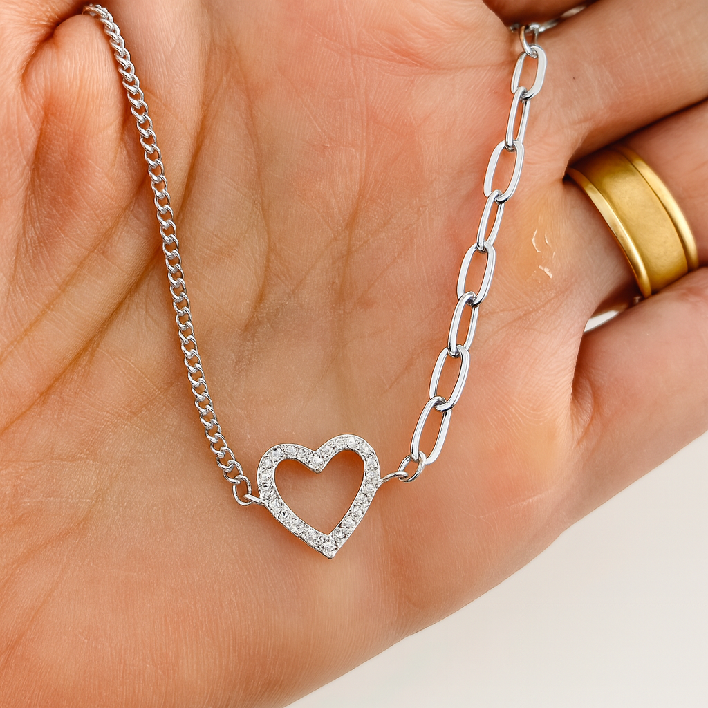 Brățară de lux Aurelia Heartline din argint 925 rodiat cu inimă pavé zirconii