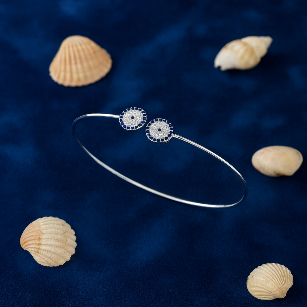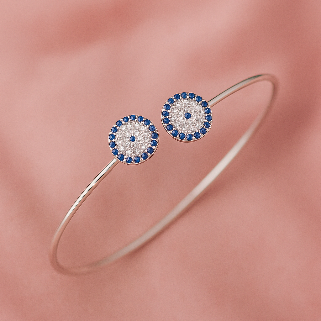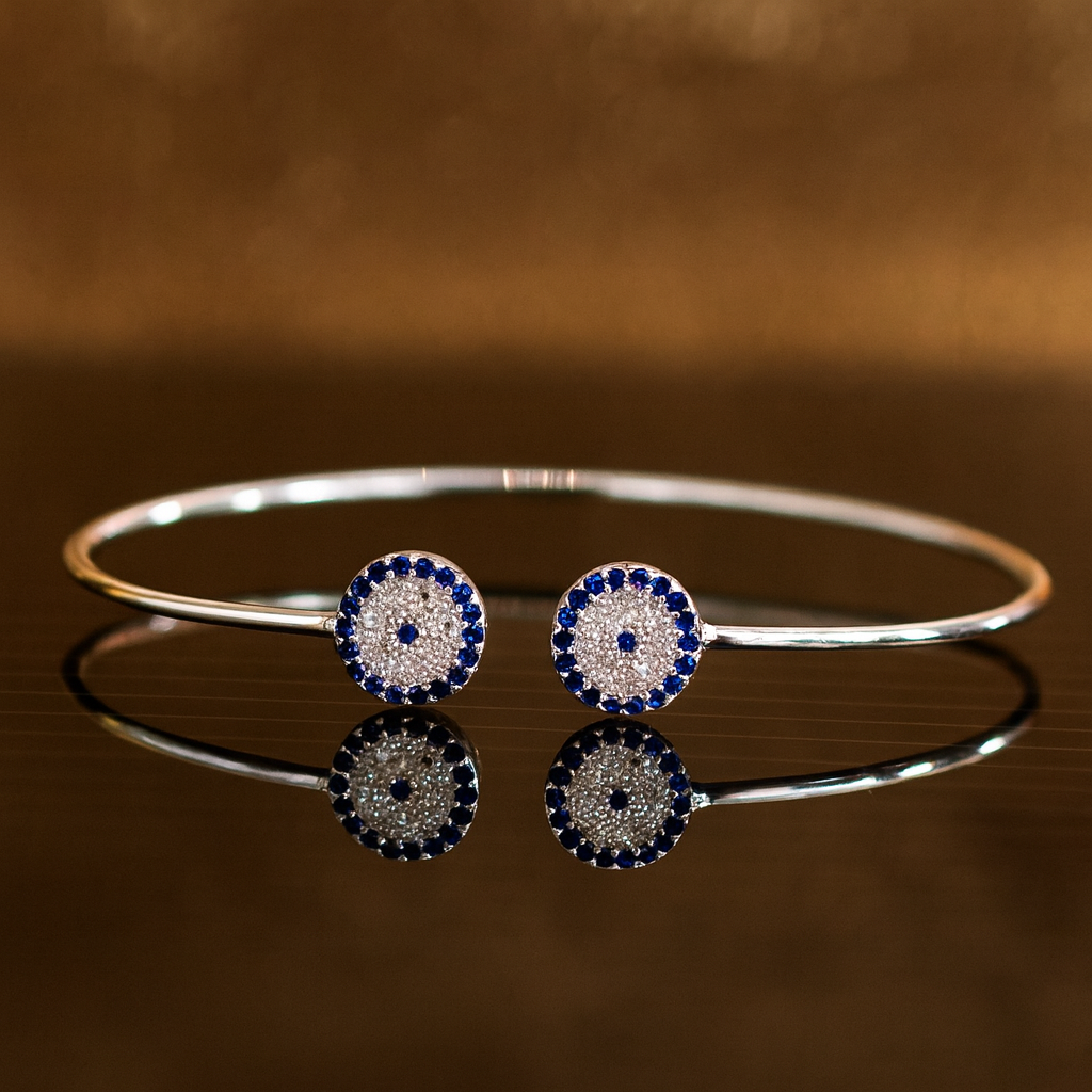 Brățară Deschisă din Argint 925 cu Ochi Albastru și Pietre Zirconiu