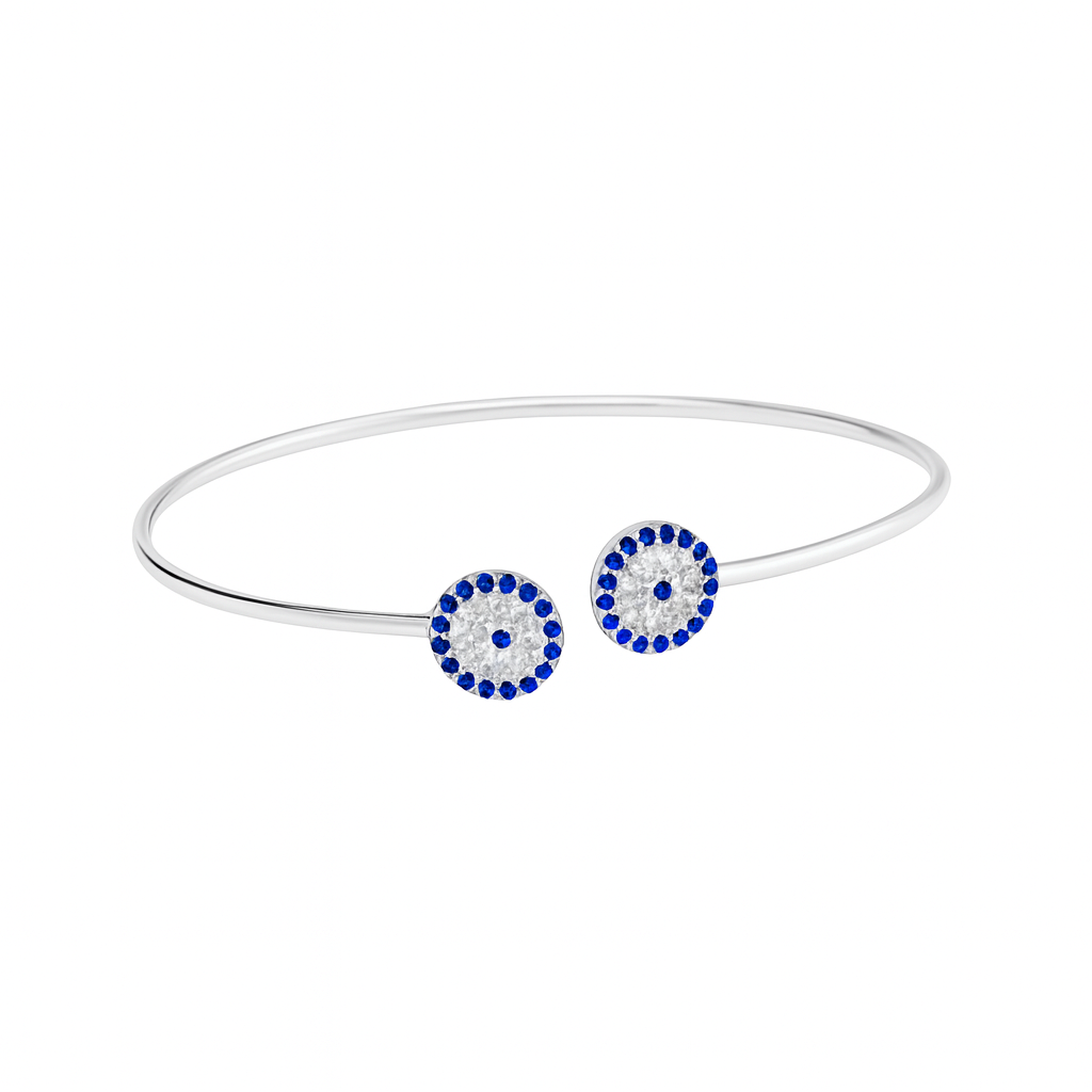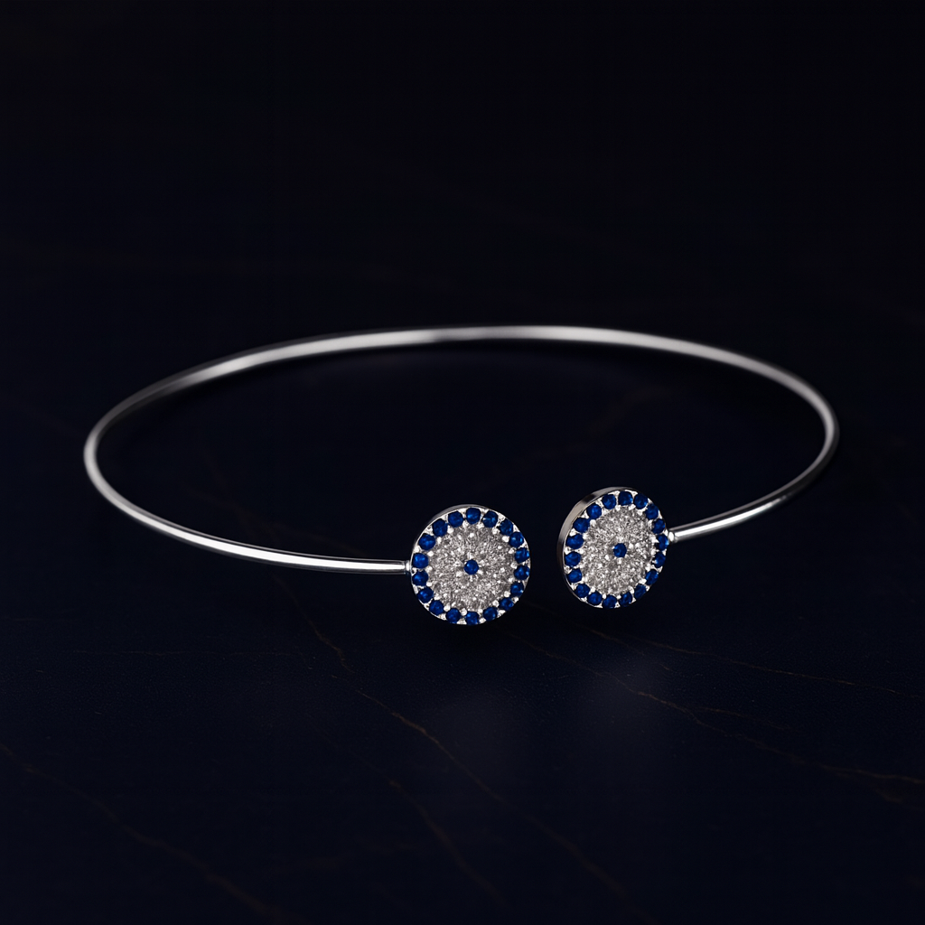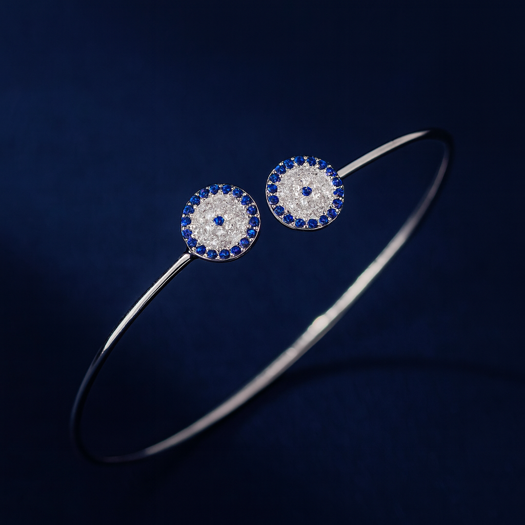 Brățară Deschisă din Argint 925 cu Ochi Albastru și Pietre Zirconiu