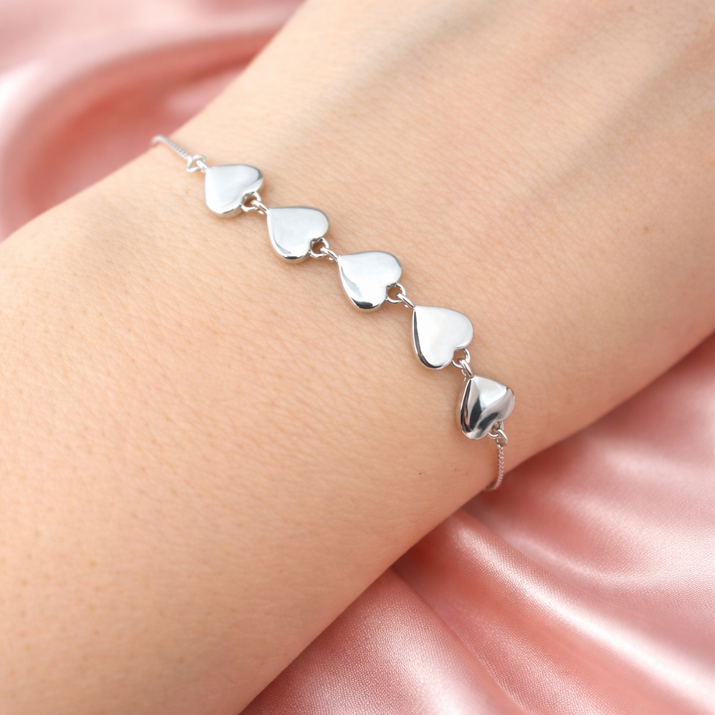 Brățară din Argint 925 Rodiat „Cinque Amore” – Inimioare Elegante, Lungime Ajustabilă 16+3 cm. BD396