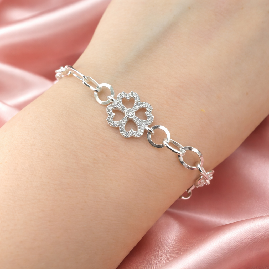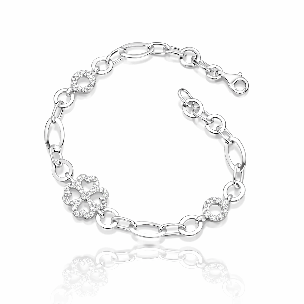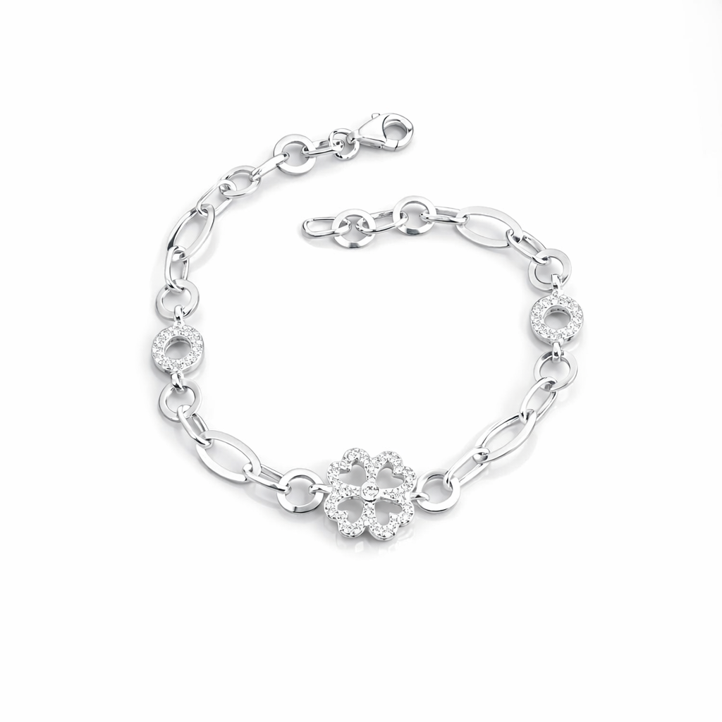 Brățară din Argint 925 „Trifoi Regal” – Eleganță Norocoasă cu Accente Strălucitoare. BD386