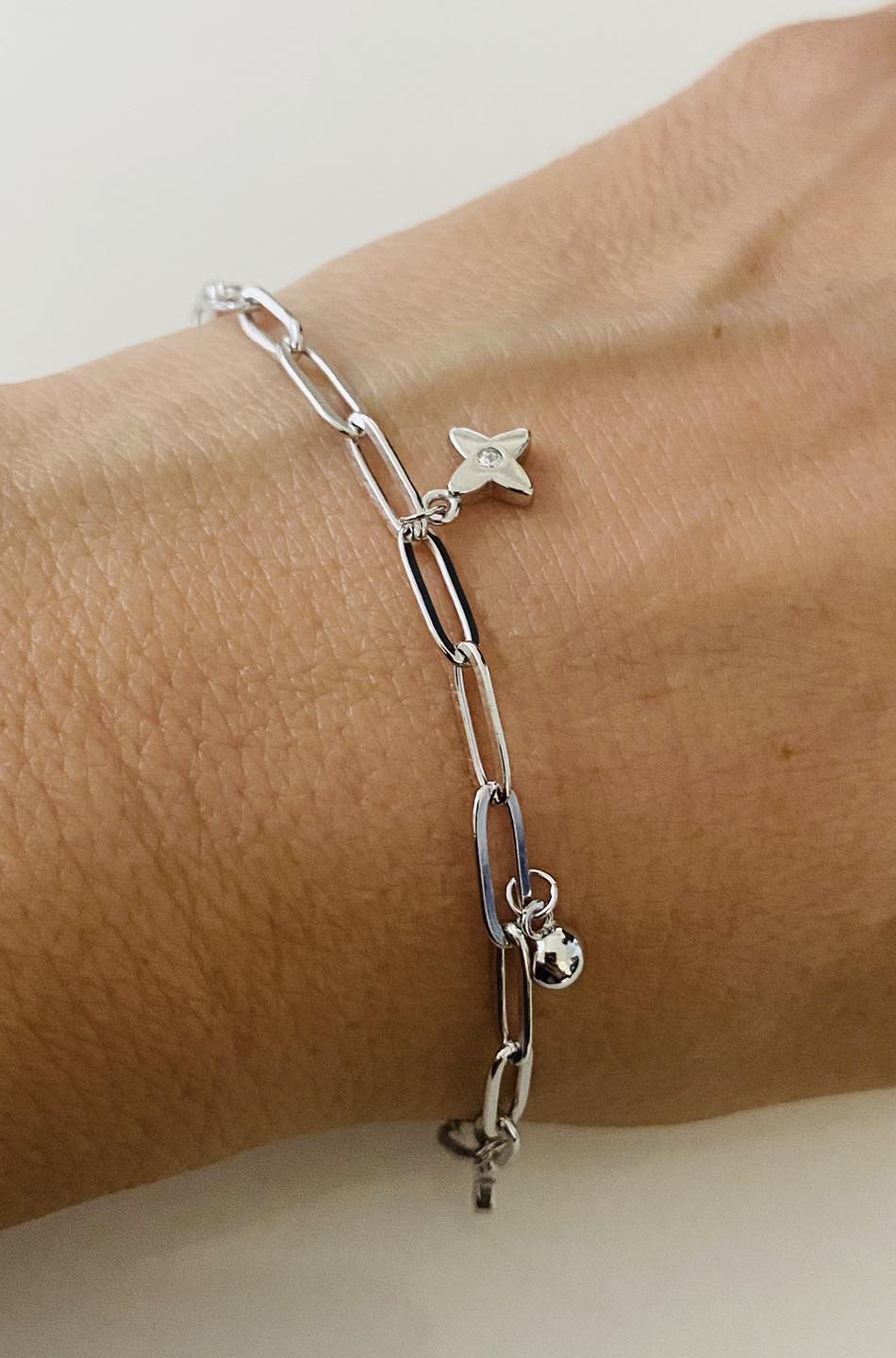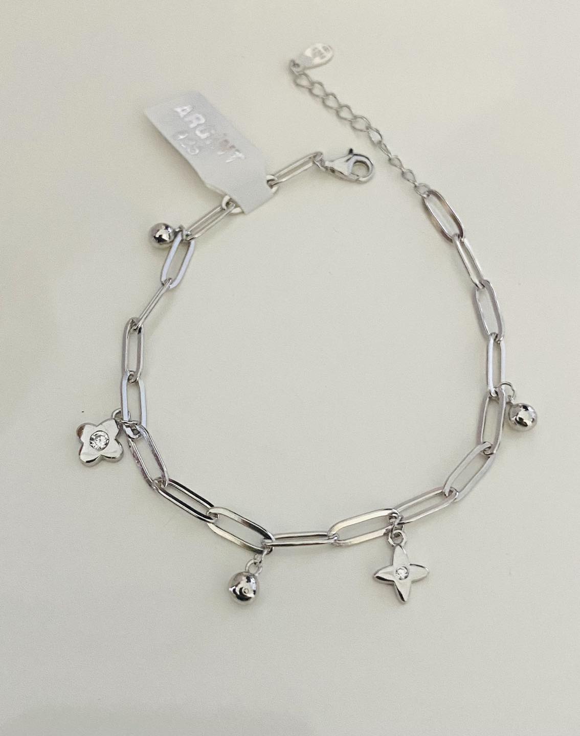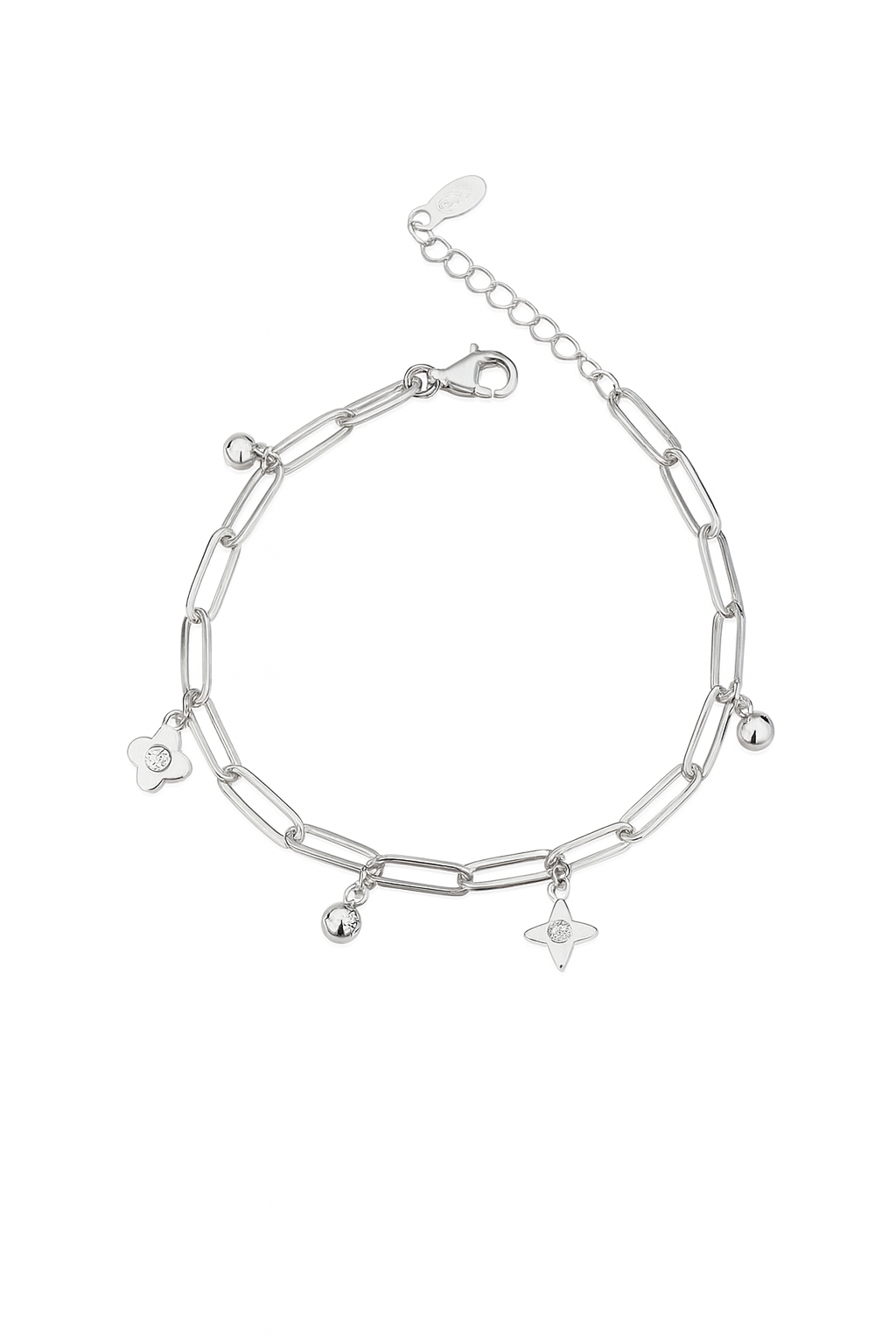 Brățară elegantă cu charmuri florale și stea din Argint 925 rodiat.