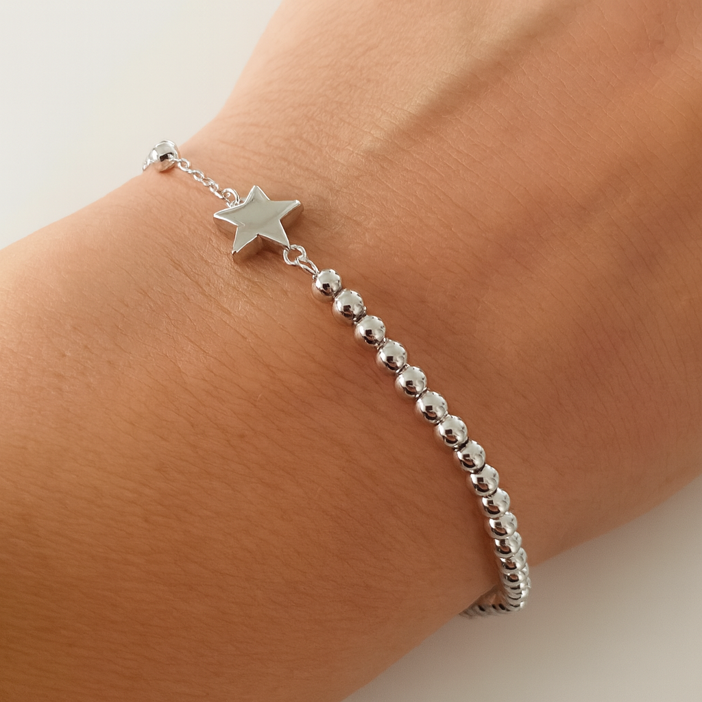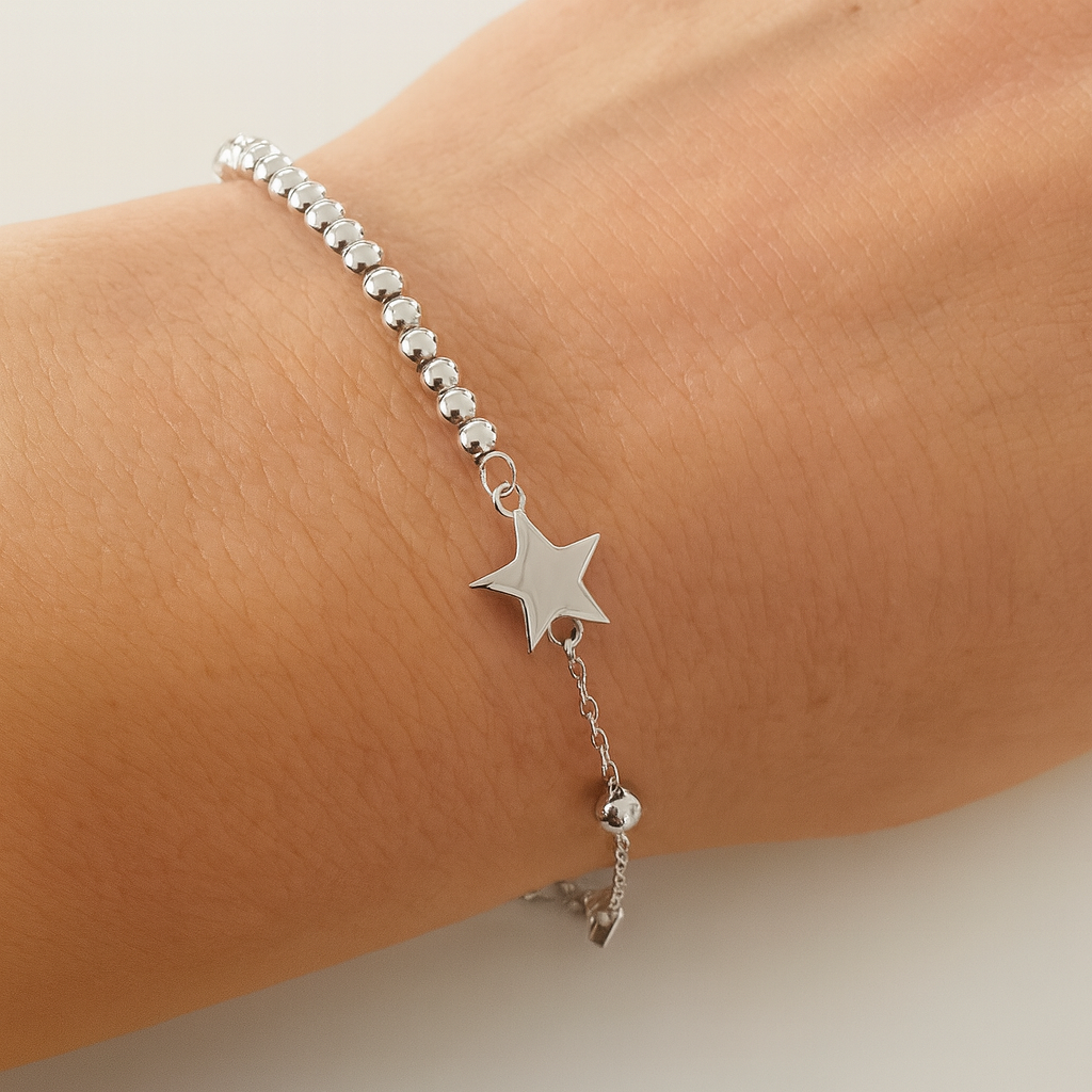 Alege această brățară de argint cu stele pentru a adăuga o notă de strălucire discretă ținutelor tale sau pentru a oferi un cadou rafinat unei persoane dragi. Ideală pentru uz zilnic sau evenimente speciale.