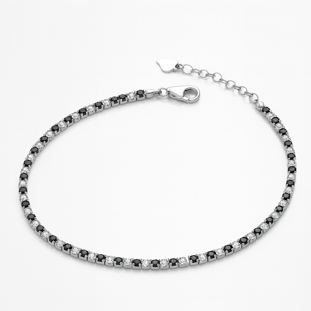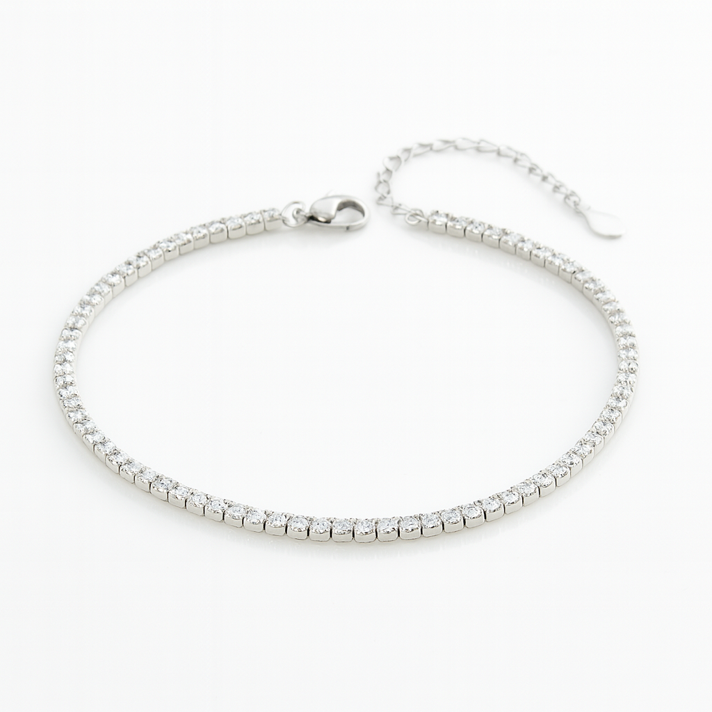 Descoperă eleganța rafinată a acestei brățări tenis din argint 925 rodiat, o bijuterie clasică și sofisticată care adaugă un plus de strălucire oricărei ținute. Realizată cu măiestrie din argint de cea mai înaltă calitate, brățara este placată cu rodiu pentru un finisaj lucios și o rezistență sporită la oxidare. Pietrele cubic zirconia perfect aliniate, cu o lățime de 2 mm, oferă o strălucire discretă, dar elegantă, potrivită pentru purtarea zilnică sau ocazii speciale.