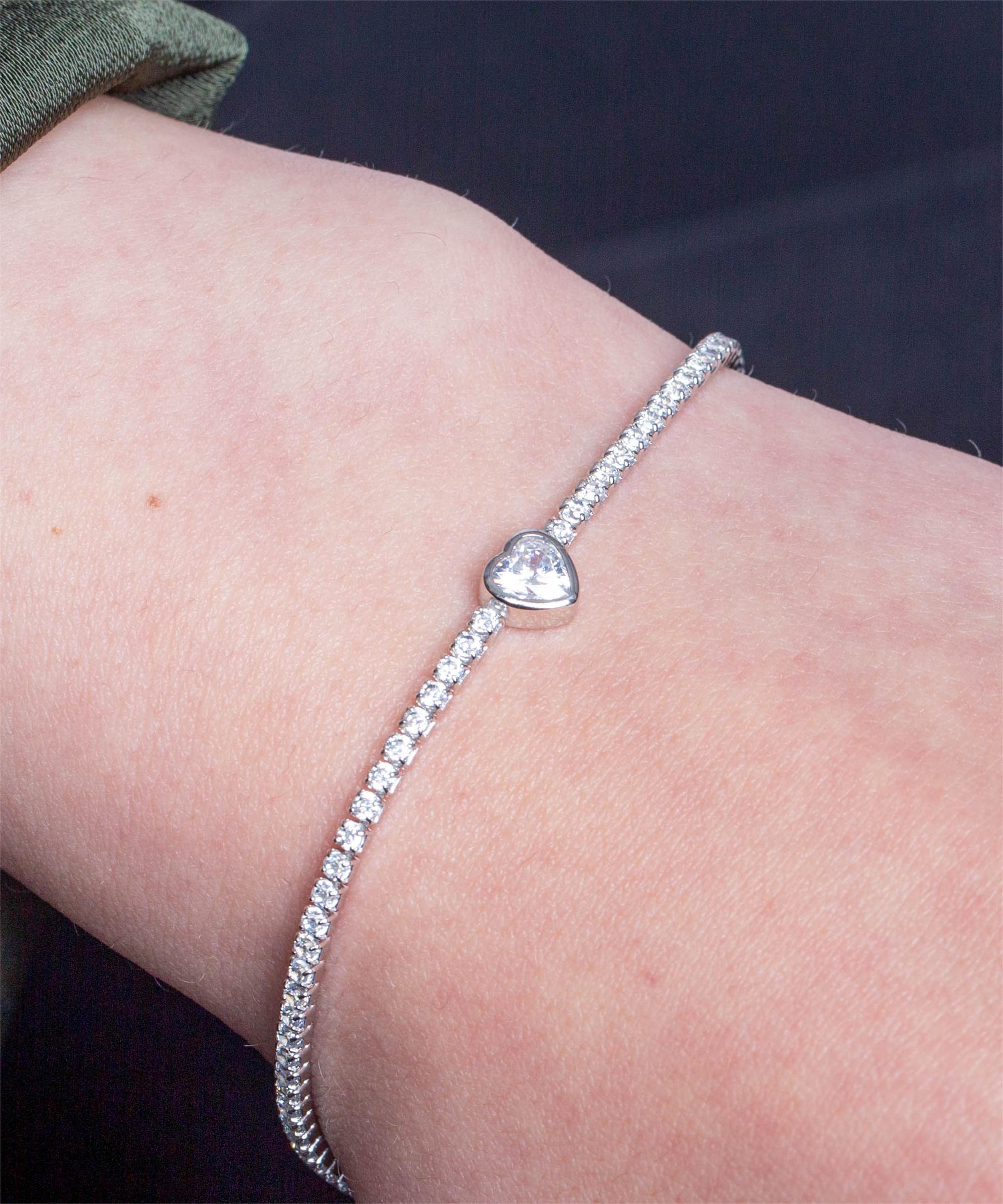Bratara tenis din argint 925 cu inimioara face parte din eleganta colectie Infinity Bijoux. Stralucirea oferita de pietrele de zirconiu atent finisate si detaliile impecabile fac ca bratara sa fie potrivit oricarei ocazii. Material: Argint 925. Lungime 16+3 cm (ajustabil). De asemenea, veti primi inclus si cutiuta de cadou in care produsul dumneavoastra va fi ambalat cu multa grija alaturi de factura si certificat de conformitate.