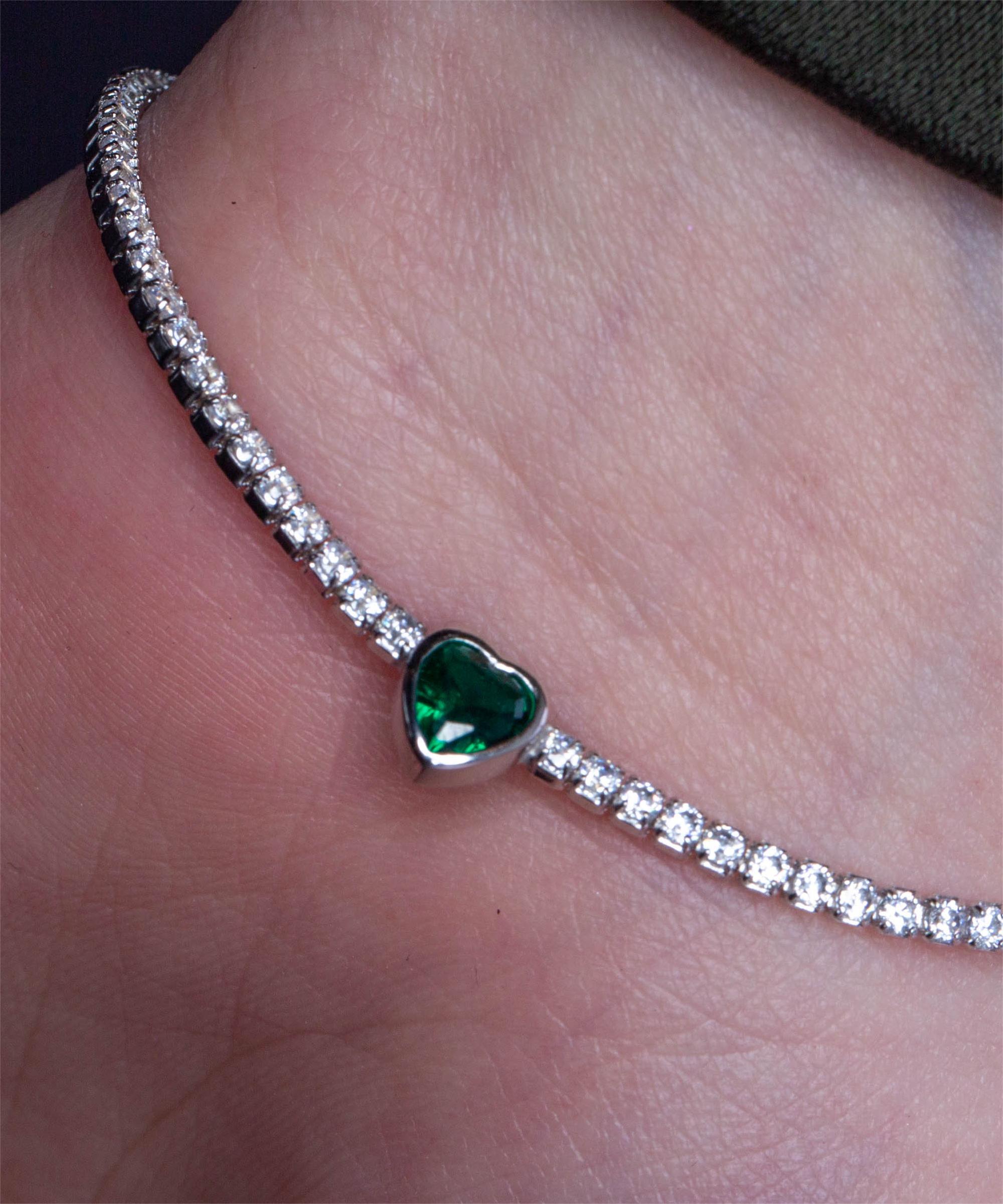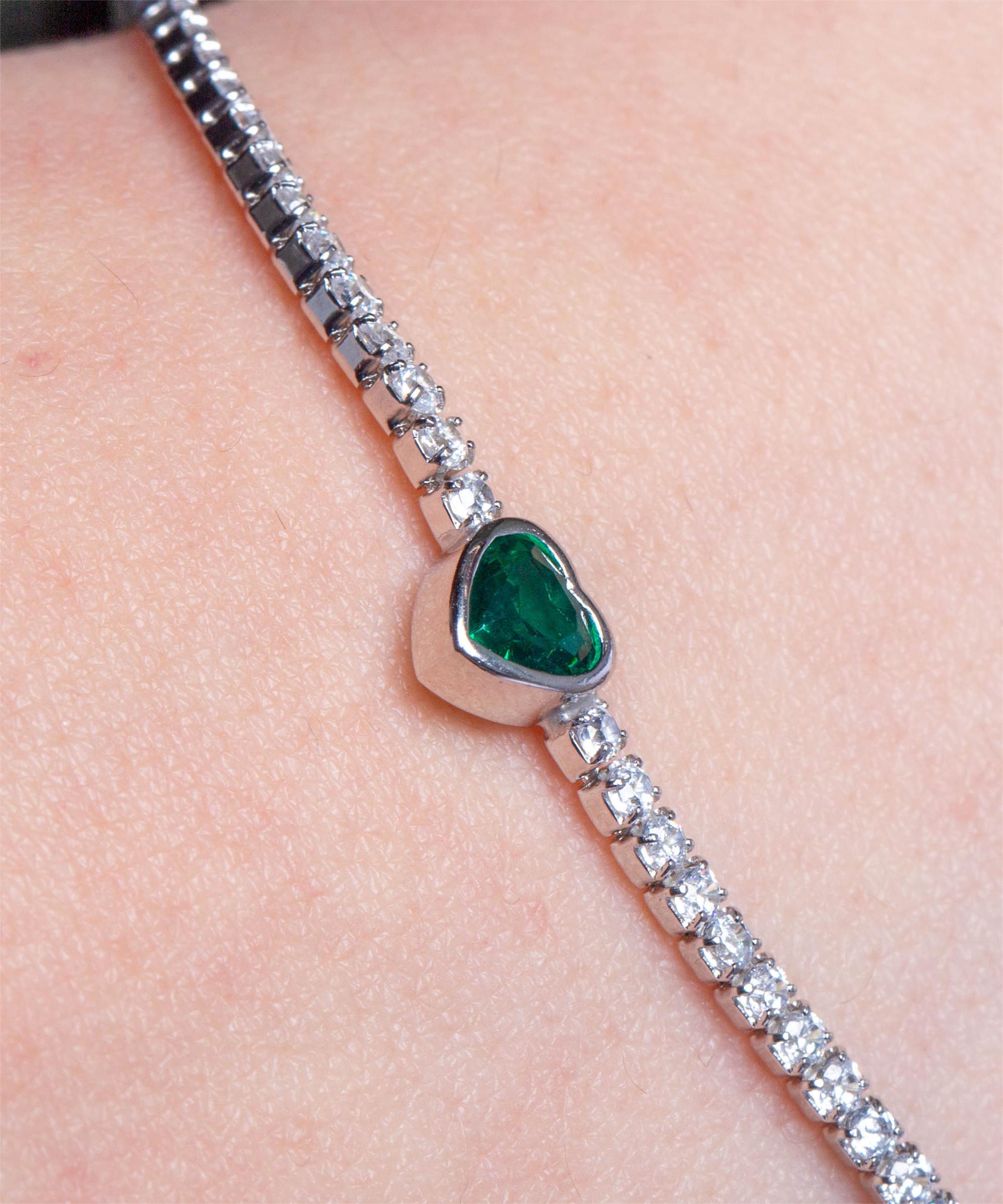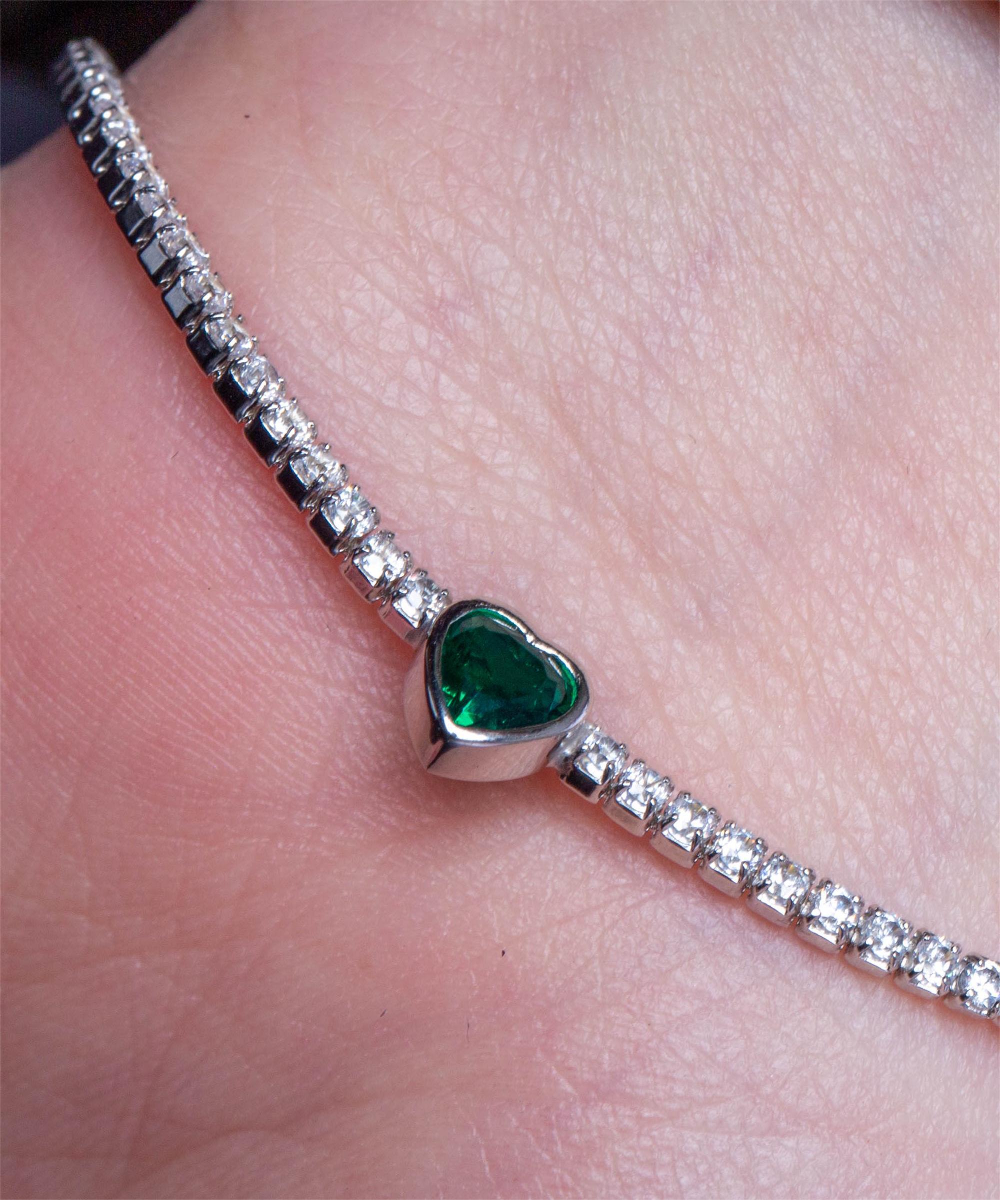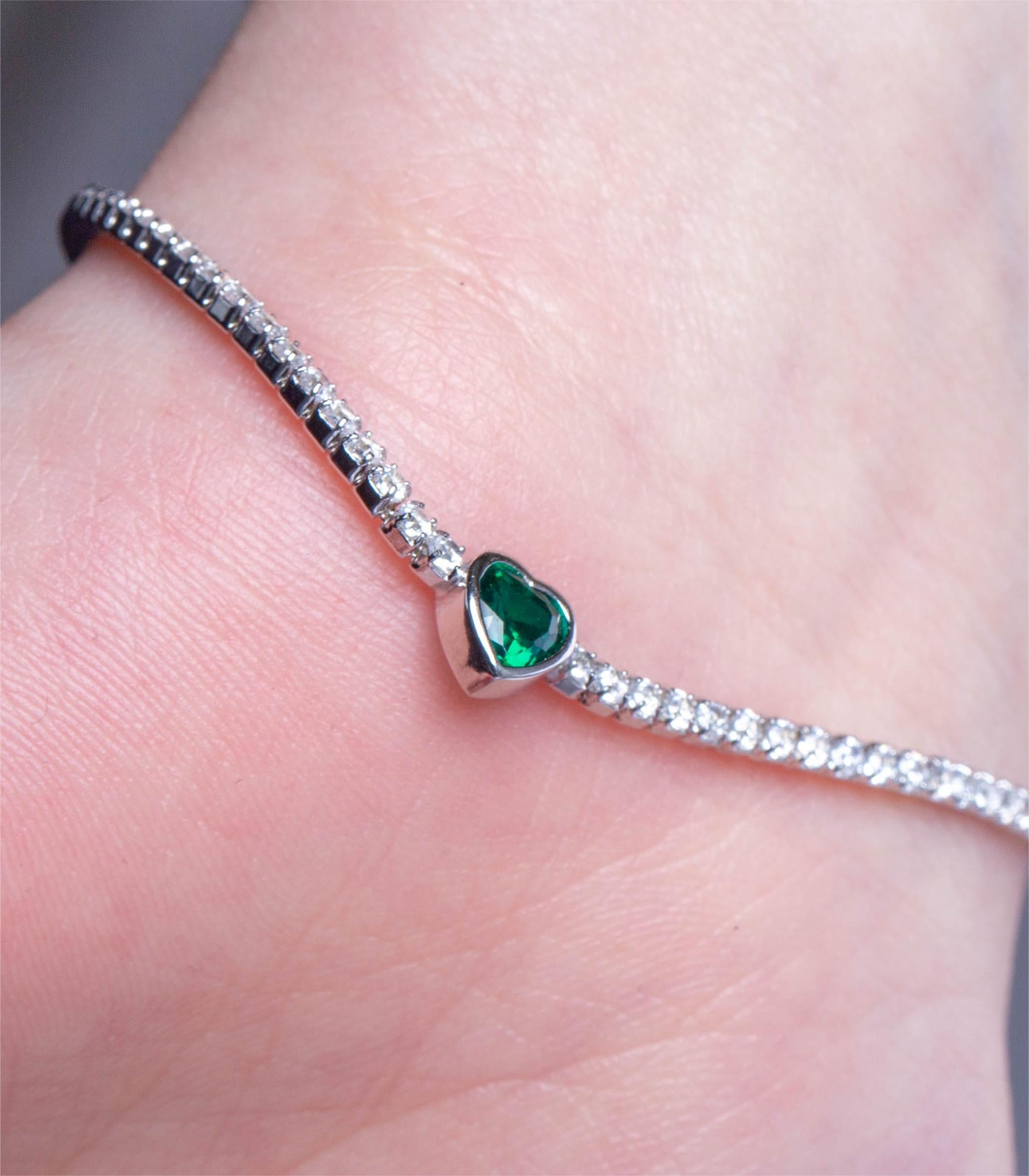 Bratara tenis din argint 925 cu inimioara verde face parte din eleganta colectie Infinity Bijoux. Stralucirea oferita de pietrele de zirconiu atent finisate si detaliile impecabile fac ca bratara sa fie potrivit oricarei ocazii. Material: Argint 925. Lungime 16+3 cm (ajustabil). De asemenea, veti primi inclus si cutiuta de cadou in care produsul dumneavoastra va fi ambalat cu multa grija alaturi de factura si certificat de conformitate.