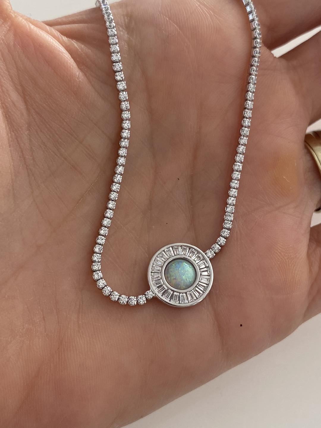 Bratara tenis din argint 925 cu opal Opalite face parte din eleganta colectie Infinity Bijoux. Stralucirea oferita de pietrele de zirconiu si piatra centrala din opal, atent finisate si detaliile impecabile fac ca bratara sa fie potrivita oricarei ocazii. Material: Argint 925. Lungime 17+4 cm (ajustabil), dimensiune element central 12mm, latime 2mm. Greutate 3.95 gr. De asemenea, veti primi inclus si cutiuta de cadou in care produsul dumneavoastra va fi ambalat cu multa grija alaturi de factura si certificat de conformitate.