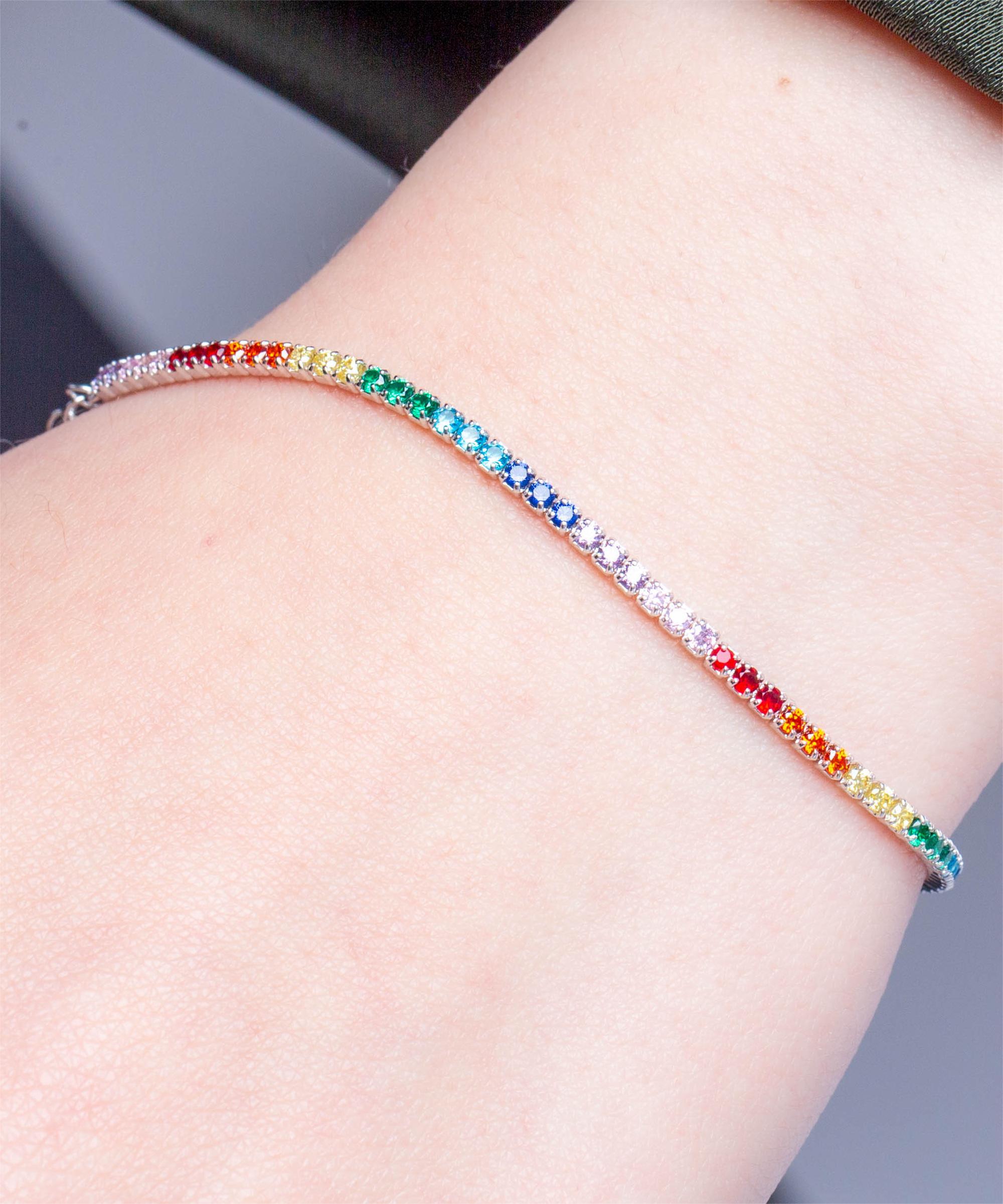 Bratara tenis din argint 925 Rainbow face parte din eleganta colectie Infinity Bijoux. Stralucirea oferita de pietrele de zirconiu atent finisate si detaliile impecabile fac ca bratara sa fie potrivita oricarei ocazii. Material: Argint 925. Lungime 15+4 cm (ajustabil). Greutate 2,85 gr. De asemenea, veti primi inclus si cutiuta de cadou in care produsul dumneavoastra va fi ambalat cu multa grija alaturi de factura si certificat de conformitate.