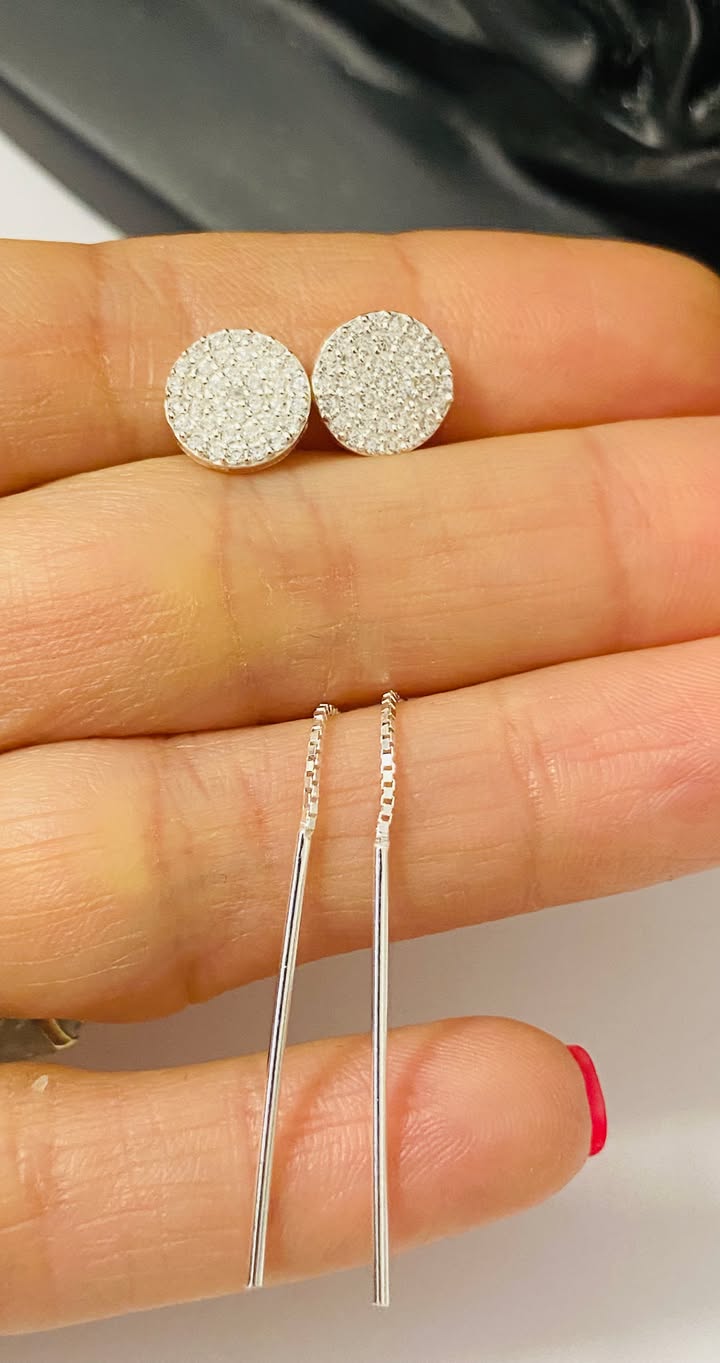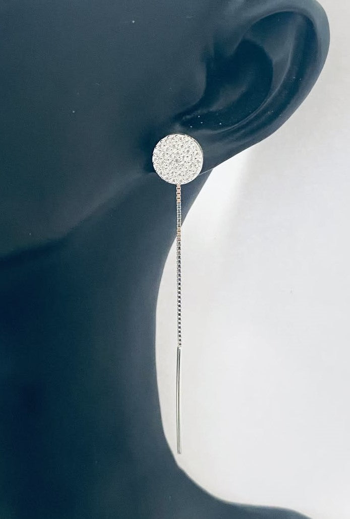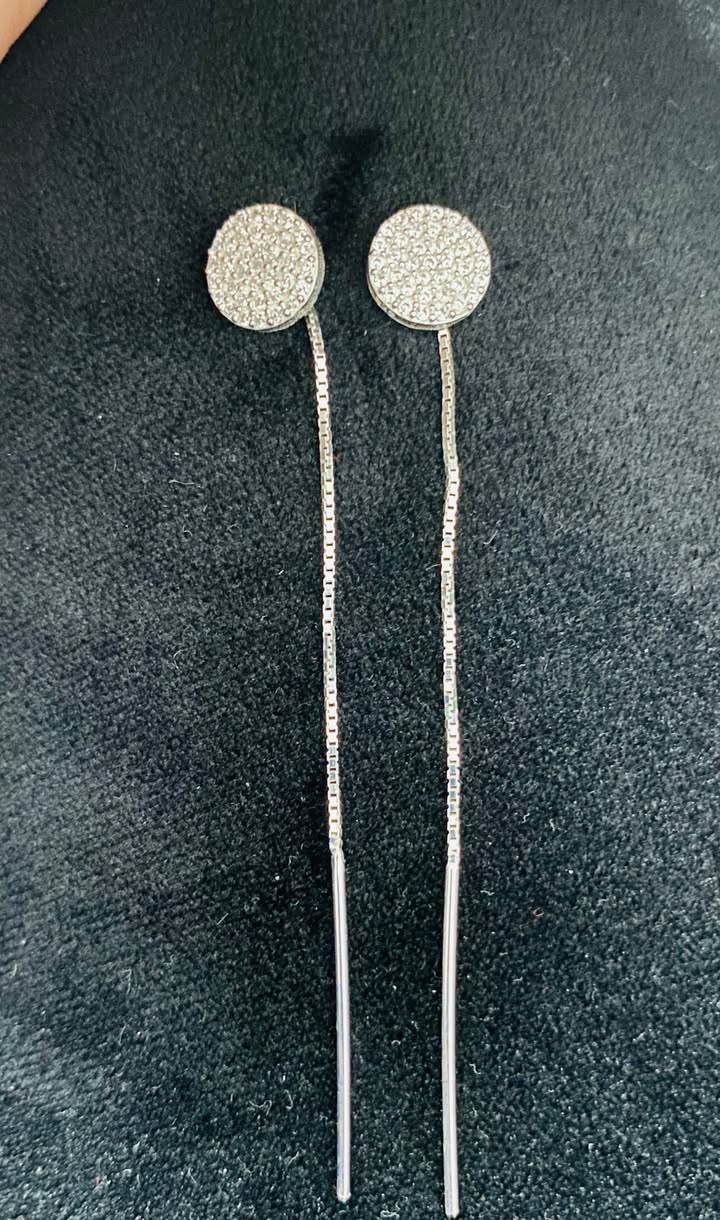 Cercei cu lant din argint 925 cu cerc si pave cu cristale albe