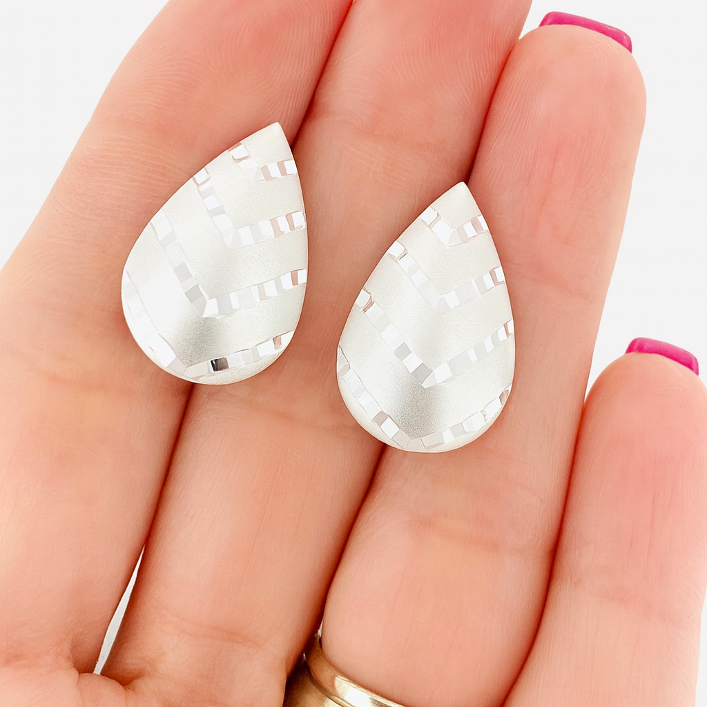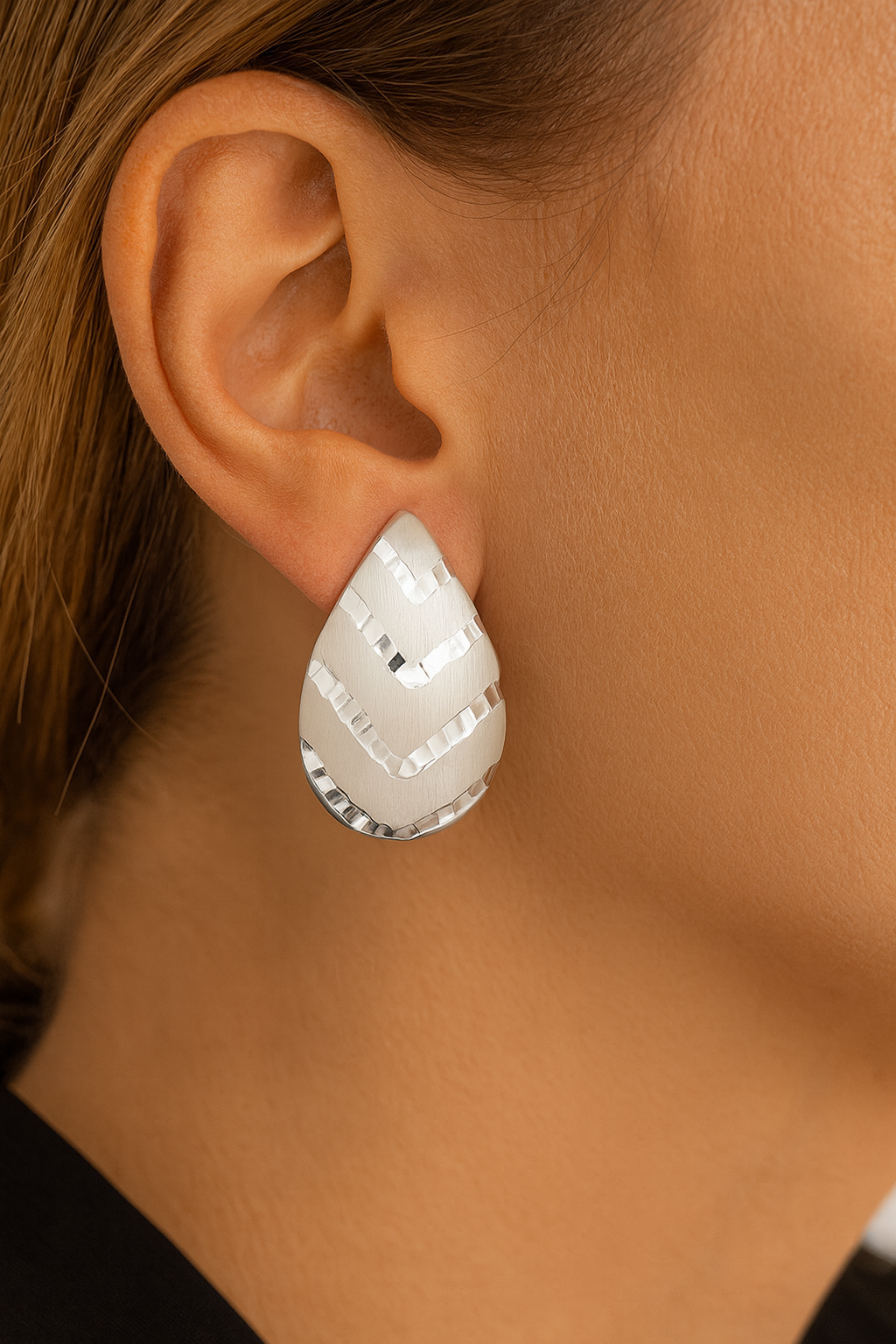 Adaugă rafinament și stil ținutei tale cu acești cercei din Argint 925, realizați într-un design elegant în formă de picătură, cu model geometric fin texturat. Sunt perfecți pentru a completa atât o ținută de zi, cât și una de seară, oferind un plus de strălucire și eleganță.