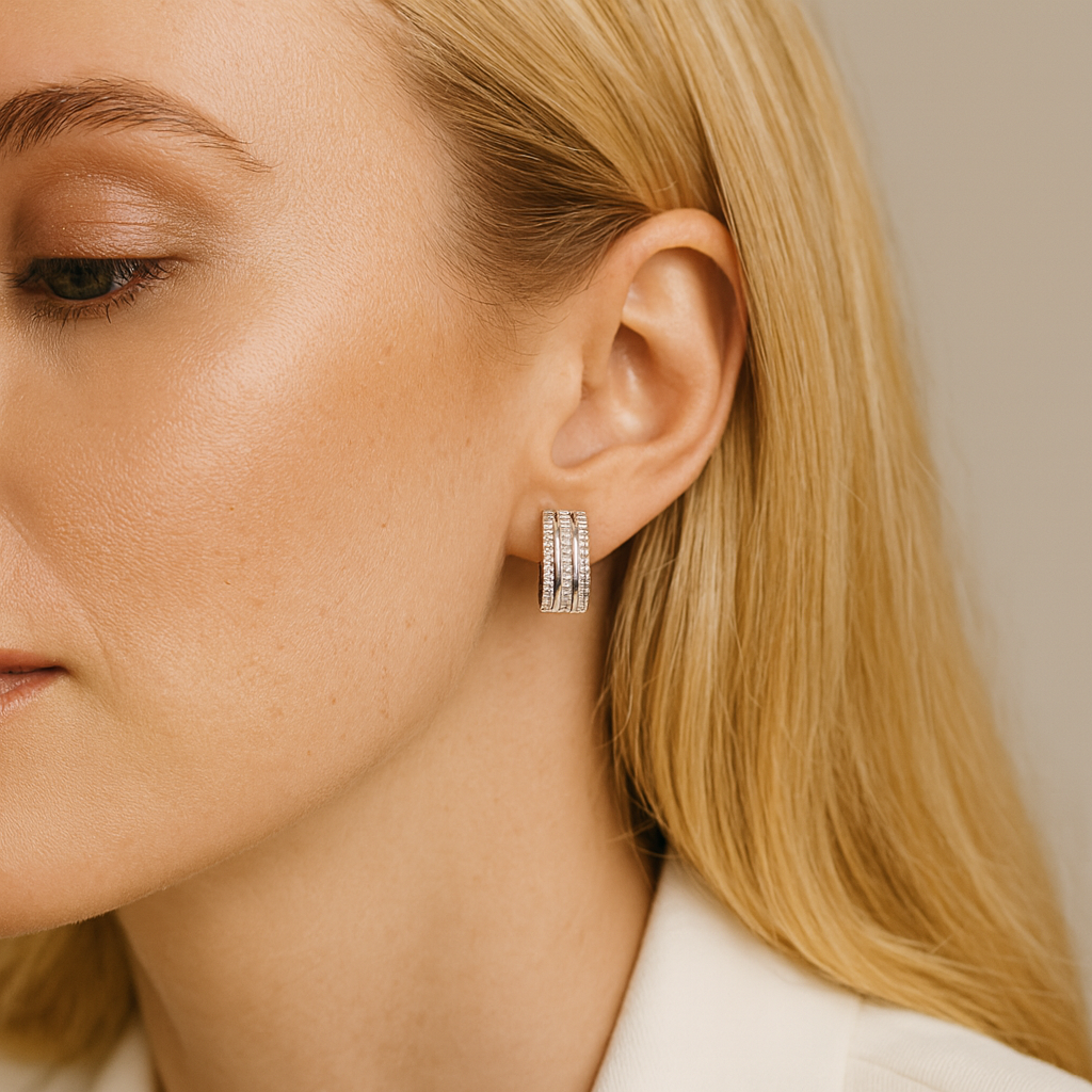 Cercei “Dual Shine” din Argint 925 Rodiat – Eleganță Geometrică cu Pietre Zirconia