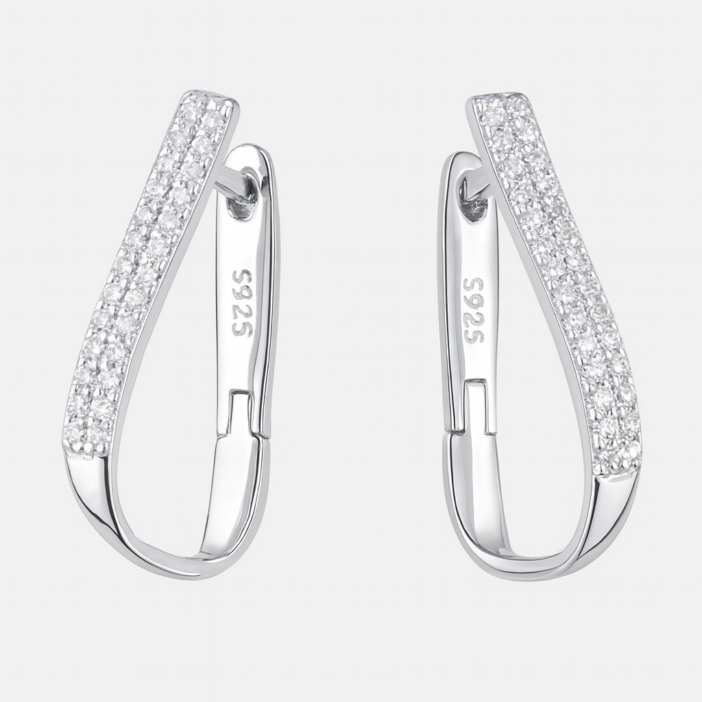 Cercei eleganți cu zirconii strălucitoare din Argint 925 rodiat, lungime 2 cm, colecția Infinity Bijoux