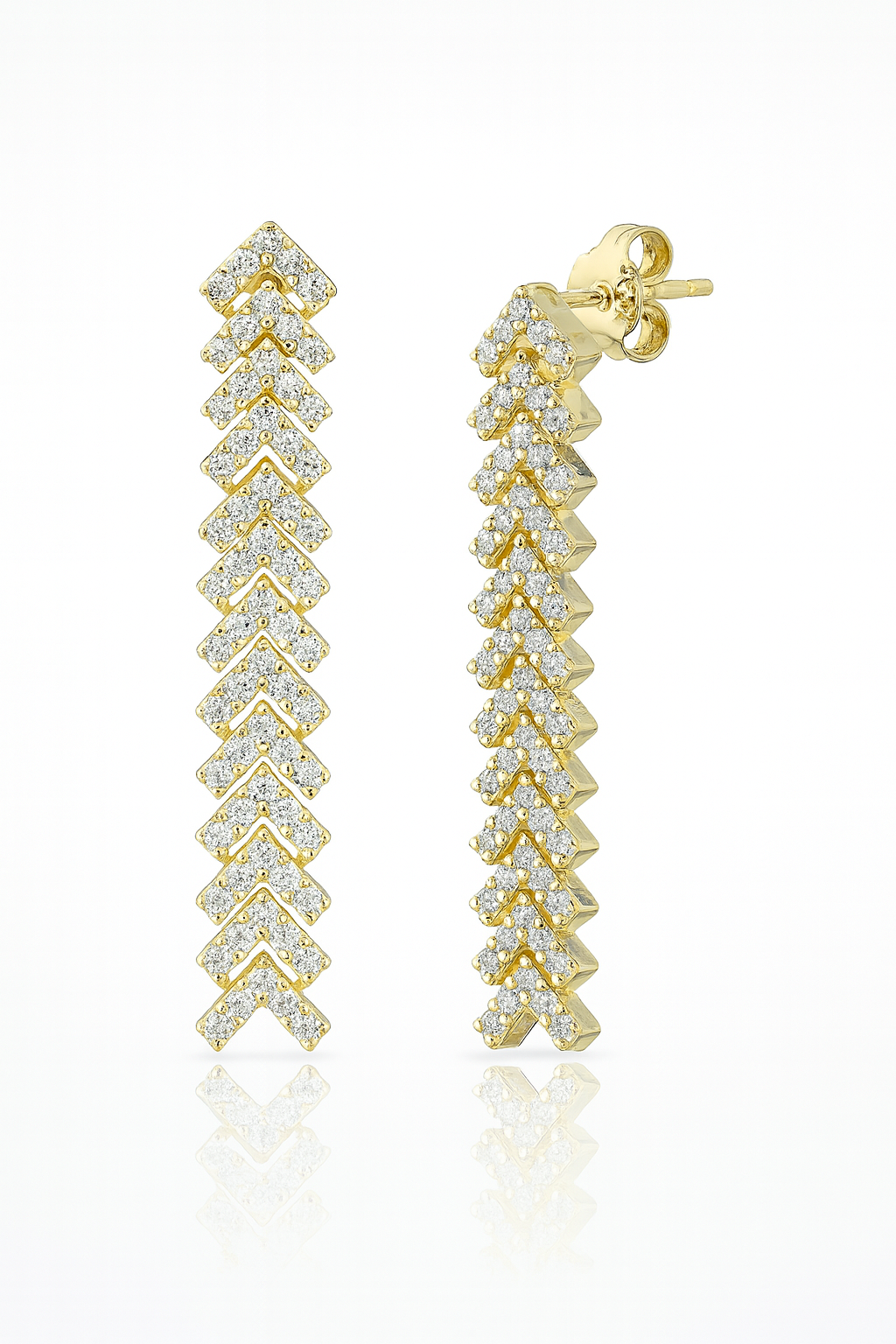 Răsfață-ți stilul cu o pereche de cercei lungi de lux din argint 925 placat cu aur de 14K, creați pentru femeia care iubește eleganța discretă și rafinamentul atemporal. Designul sofisticat, inspirat din liniile moderne ale bijuteriilor fine, îmbină perfect noblețea aurului cu strălucirea intensă a zirconiei, oferind o bijuterie care atrage privirile și completează impecabil orice ținută – de zi sau de seară.