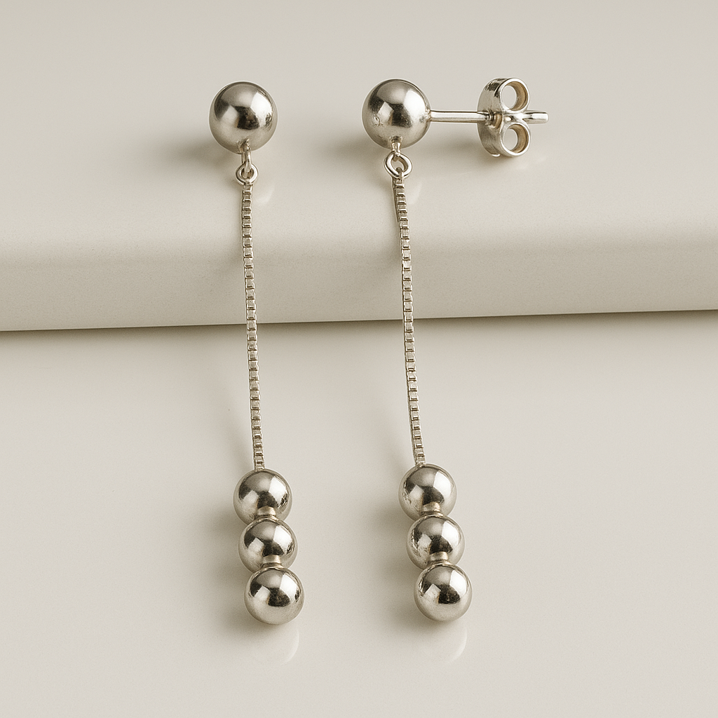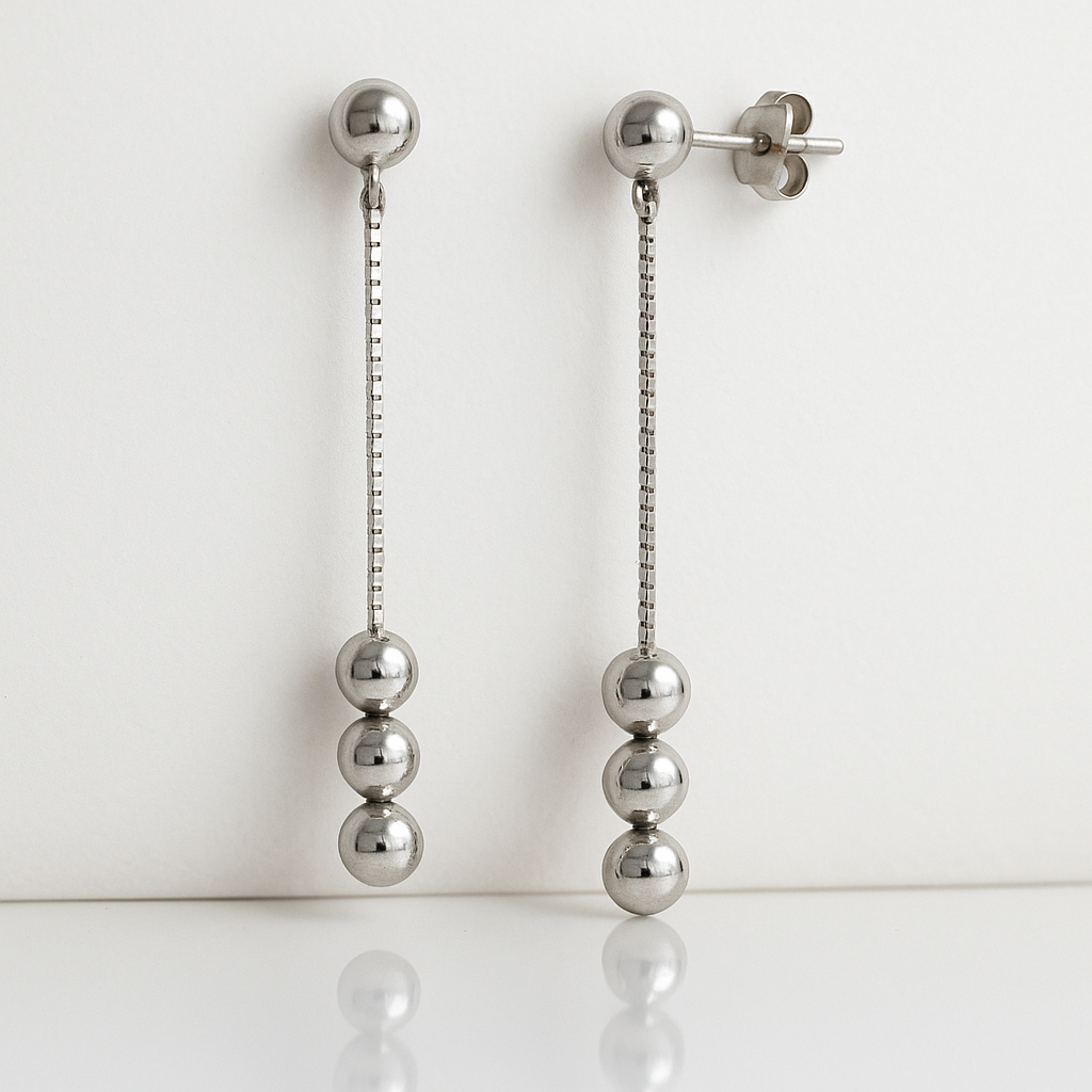 Descoperă rafinamentul pur cu acești cercei lungi din argint 925 rodiat, creați pentru femeia care apreciază eleganța simplă și modernă. Designul lor delicat, cu lanț fin și trei bile mobile, oferă o mișcare naturală și un luciu spectaculos datorită stratului de rodiu care protejează argintul împotriva oxidării. Cu o greutate de aproximativ 3.2 grame și o lungime de 5.5 cm, acești cercei sunt ușori, confortabili și potriviți atât pentru ținutele de zi, cât și pentru evenimente speciale.