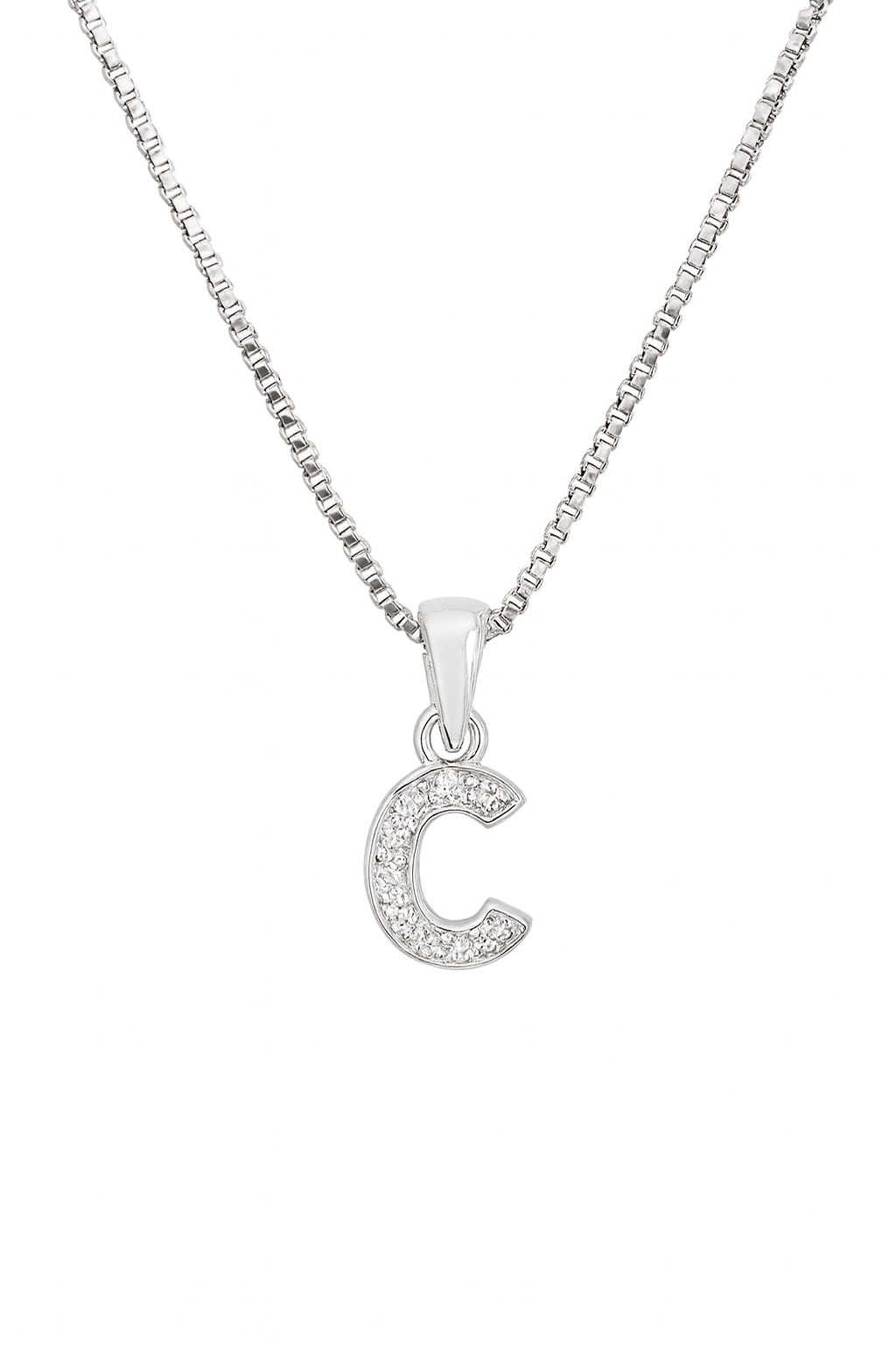 Colier argint 925 cu pandantiv litera C, lanț 45 cm, 2.2 g – certificat, marcat ANPC, cutie cadou inclusă – Colecția Infinity Bijoux.