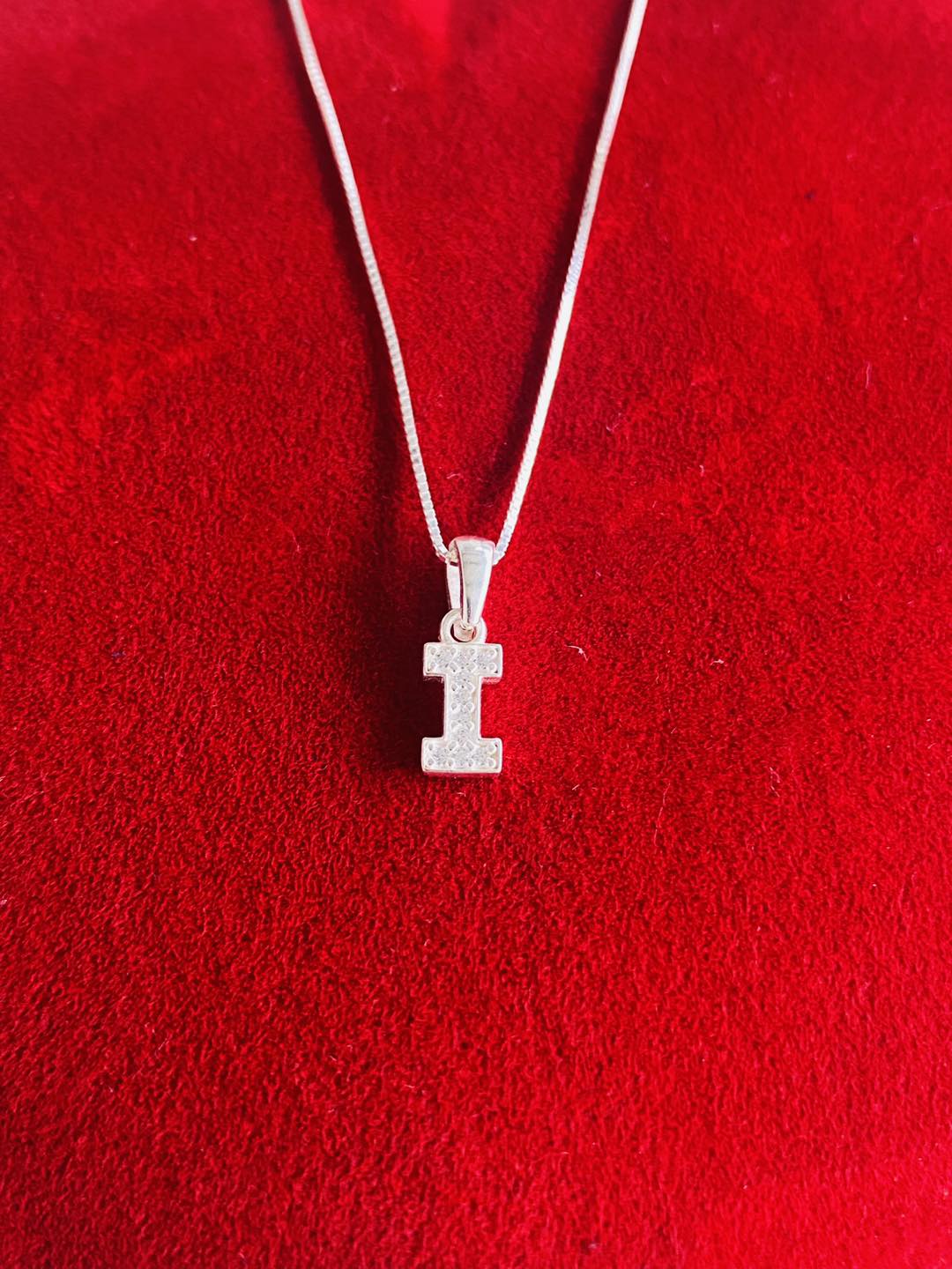 Colier elegant din argint 925 cu pandantiv litera I, greutate 2.25 g, lanț 45 cm, livrat în cutie cadou. Verificat și marcat ANPC, cu factură și certificat de conformitate.