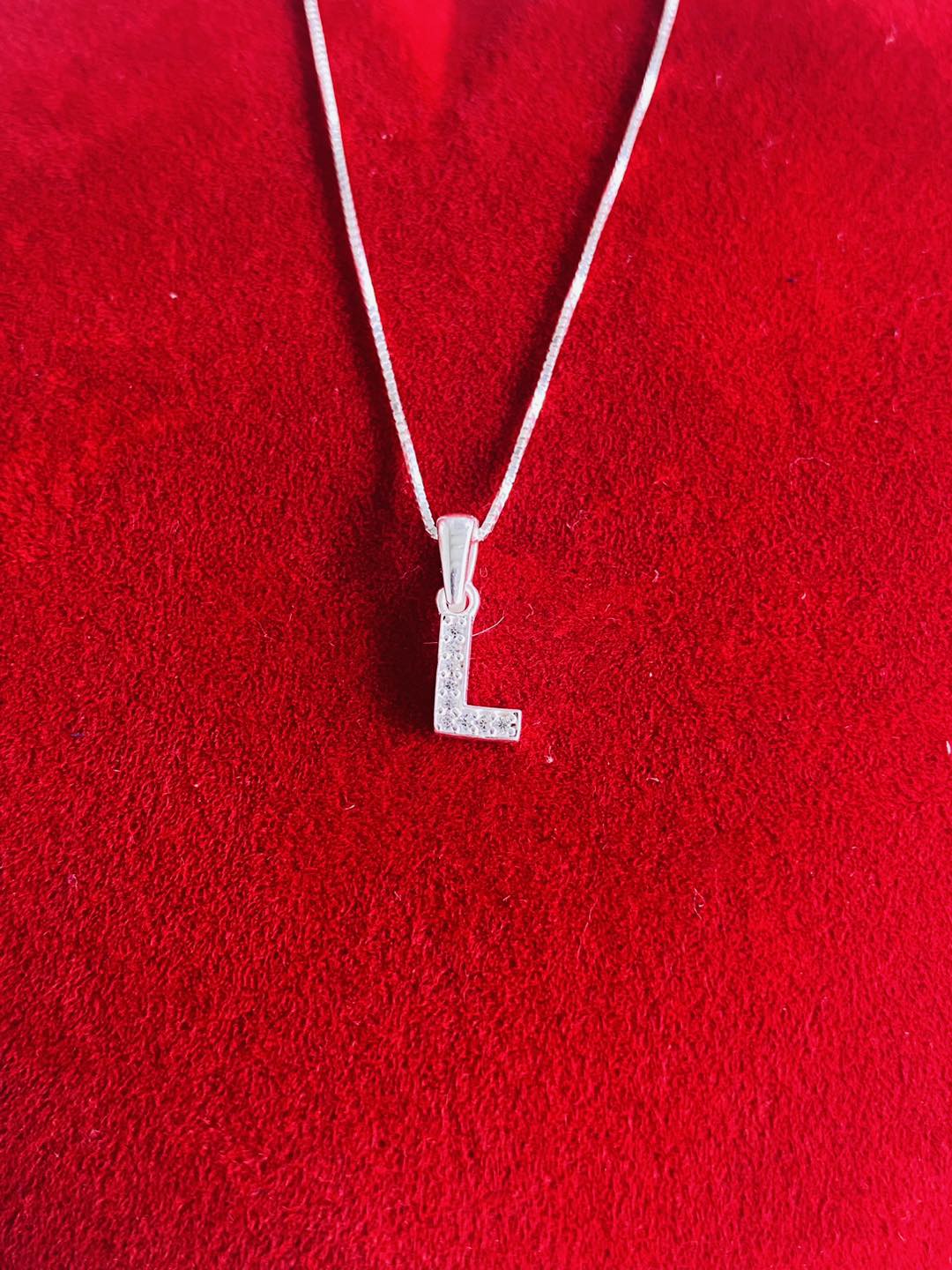 Colier elegant din argint 925 cu pandantiv litera L, greutate 2.25 g și lanț de 45 cm. Ambalat în cutie de bijuterii cadou, certificat și marcat ANPC.