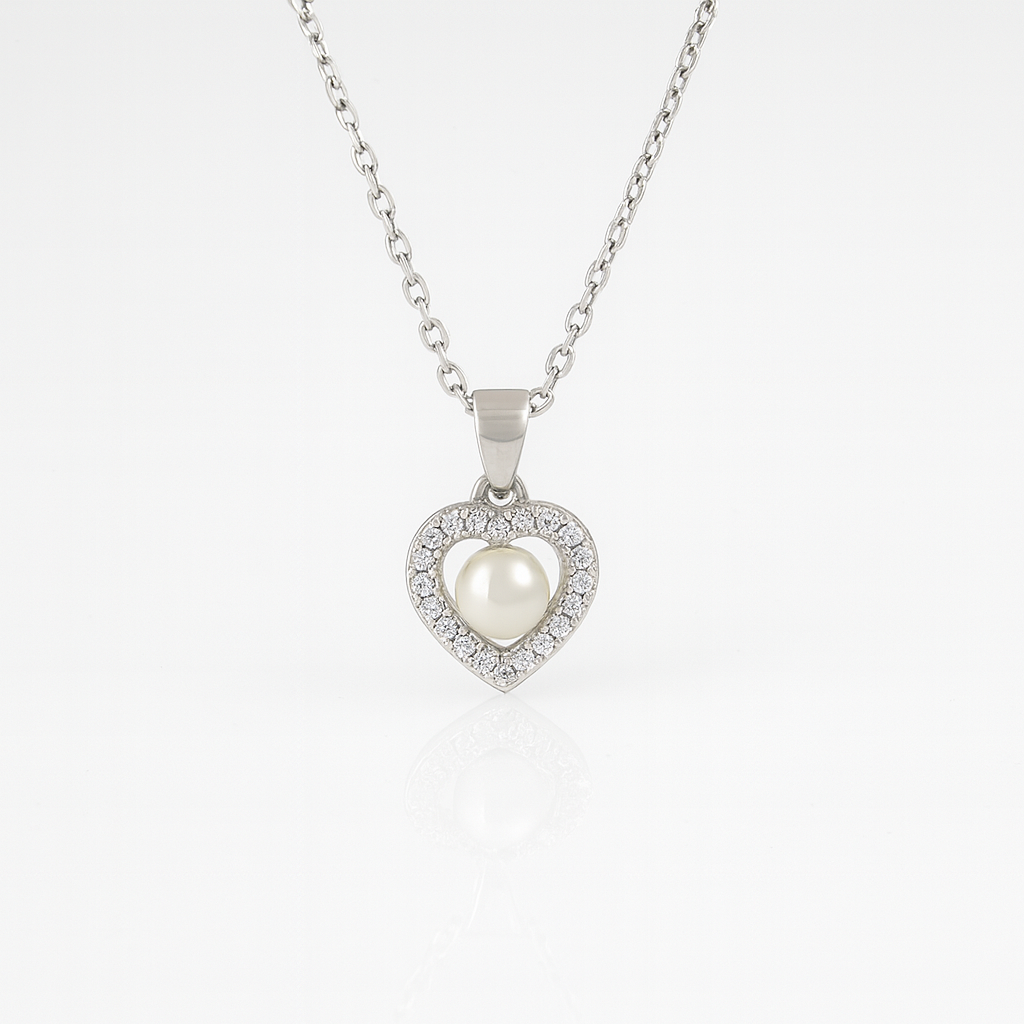 Argintul rodiat conferă un luciu intens și protecție împotriva oxidării, iar perla naturală simbolizează puritatea, feminitatea și armonia interioară. Forma de inimă exprimă iubirea sinceră și conexiunile profunde, transformând acest colier într-un simbol al eleganței și al emoției autentice.