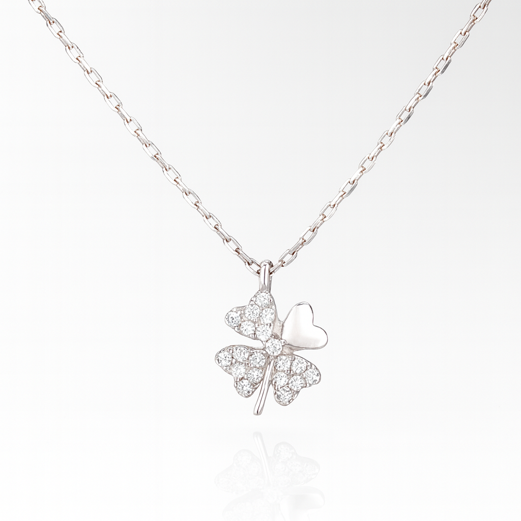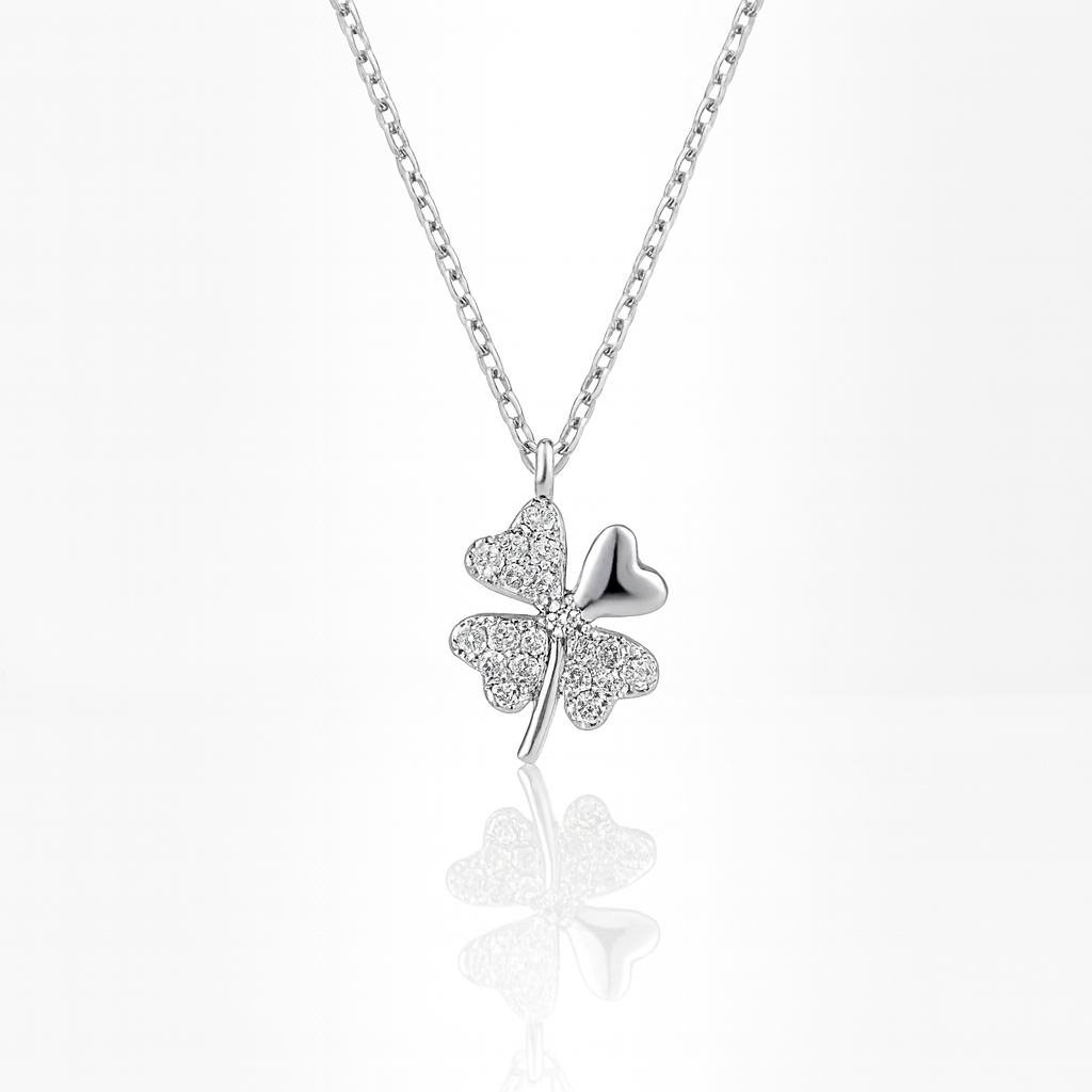 Colier Trifoi cu Patru Foi din Argint 925 Rodiat, Simbolul Norocului și al Iubirii