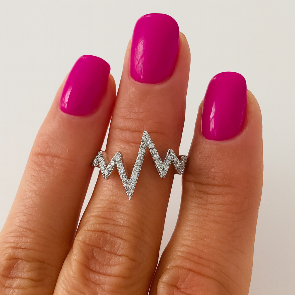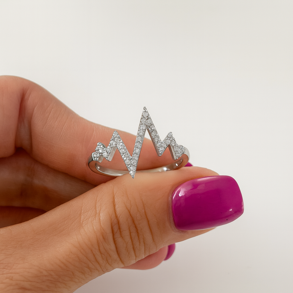 Descoperă farmecul unic al acestui inel din argint 925, decorat cu zirconii fine și având un design inspirat din linia vieții (ECG) – simbol al energiei, pasiunii și forței interioare. Cu o greutate de aproximativ 1.9 grame, acest inel rafinat exprimă dragostea pentru viață și recunoștința pentru fiecare clipă trăită. Este un cadou ideal pentru o persoană specială, oferit într-o cutie elegantă de bijuterii, însoțit de factură și certificat de conformitate. Perfect pentru a fi purtat zilnic sau la ocazii speciale, acest inel transmite un mesaj profund: fiecare bătaie de inimă contează.