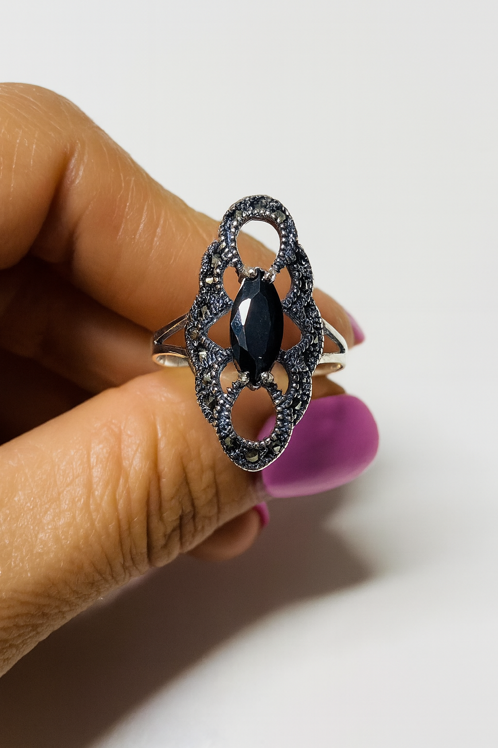 Inel de Argint 925 Eleganță Nocturnă cu Piatra Neagră, mărimea 22
