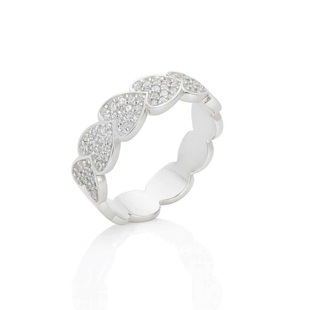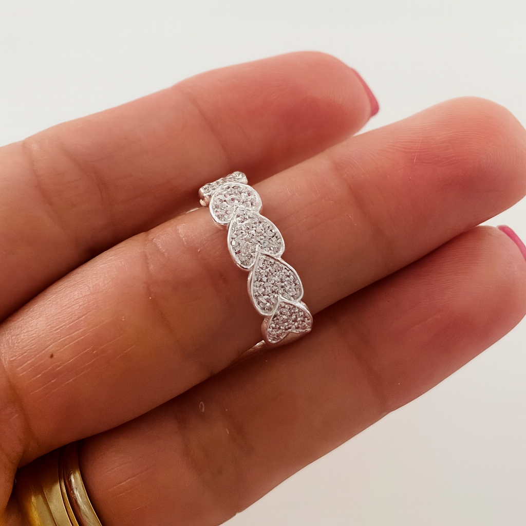 Inel din Argint 925 cu Inimi Înnădite și Pietre Strălucitoare, Simbol al Dragostei Eterne