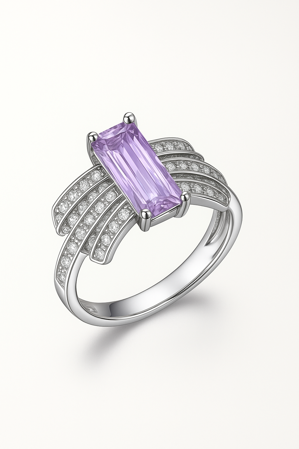 Inel din argint 925 statement cu piatră mov deschis Eternal Shine, marimea 12