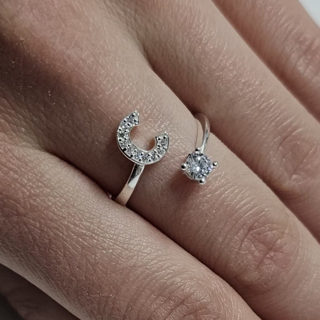 Inelul reglabil din argint cu intiala C face parte din eleganta colectie INFINITY BIJOUX. Stralucirea oferita de pietrele de zirconiu atent finisate si detaliile impecabile fac ca inelul sa fie potrivit oricarei ocazii. Material: Argint 925. Dimensiune element: 1.1 cm Diametru: 1.7 cm (dimensiune reglabila). De asemenea, veti primi inclus si cutiuta de cadou in care produsul dumneavoastra va fi ambalat cu multa grija.