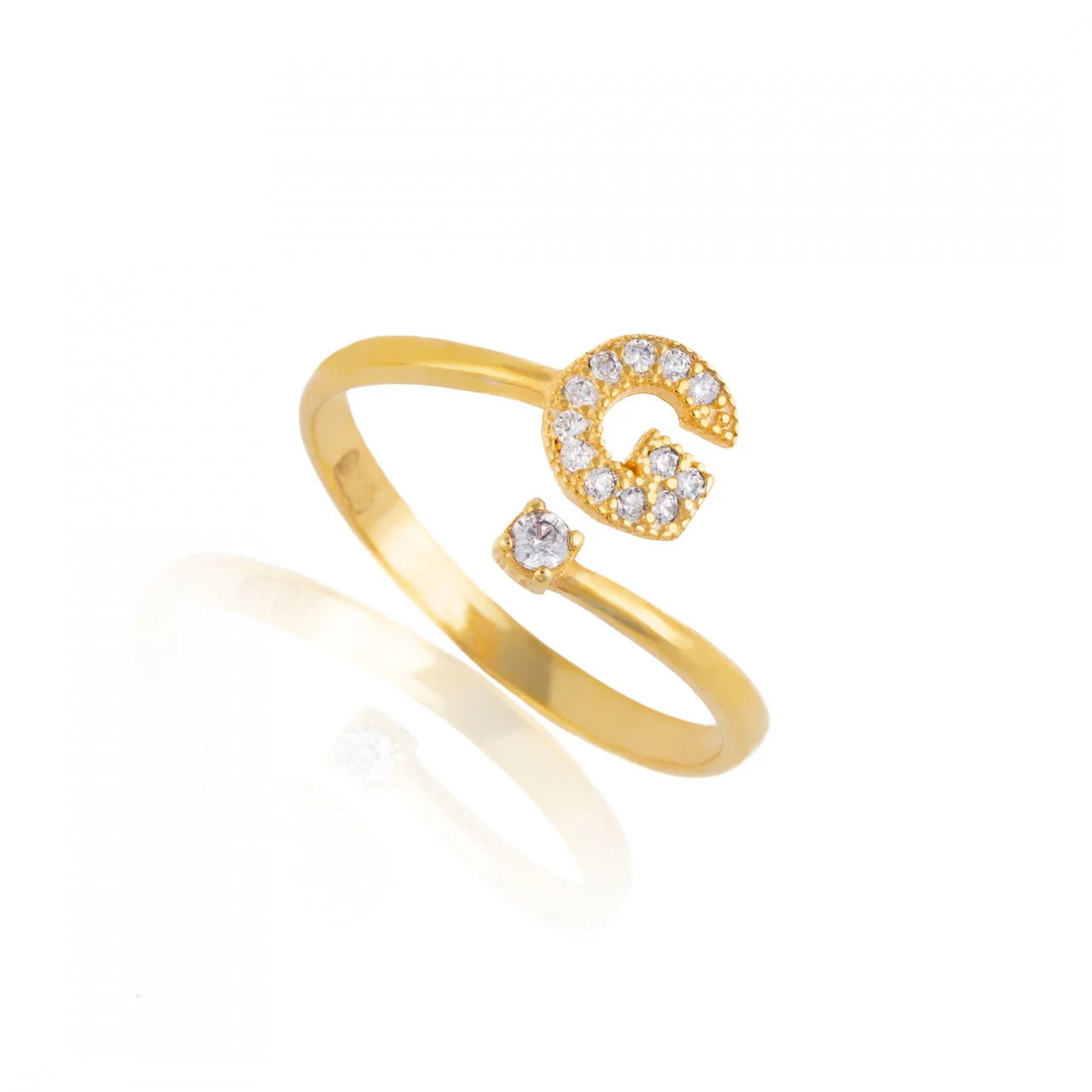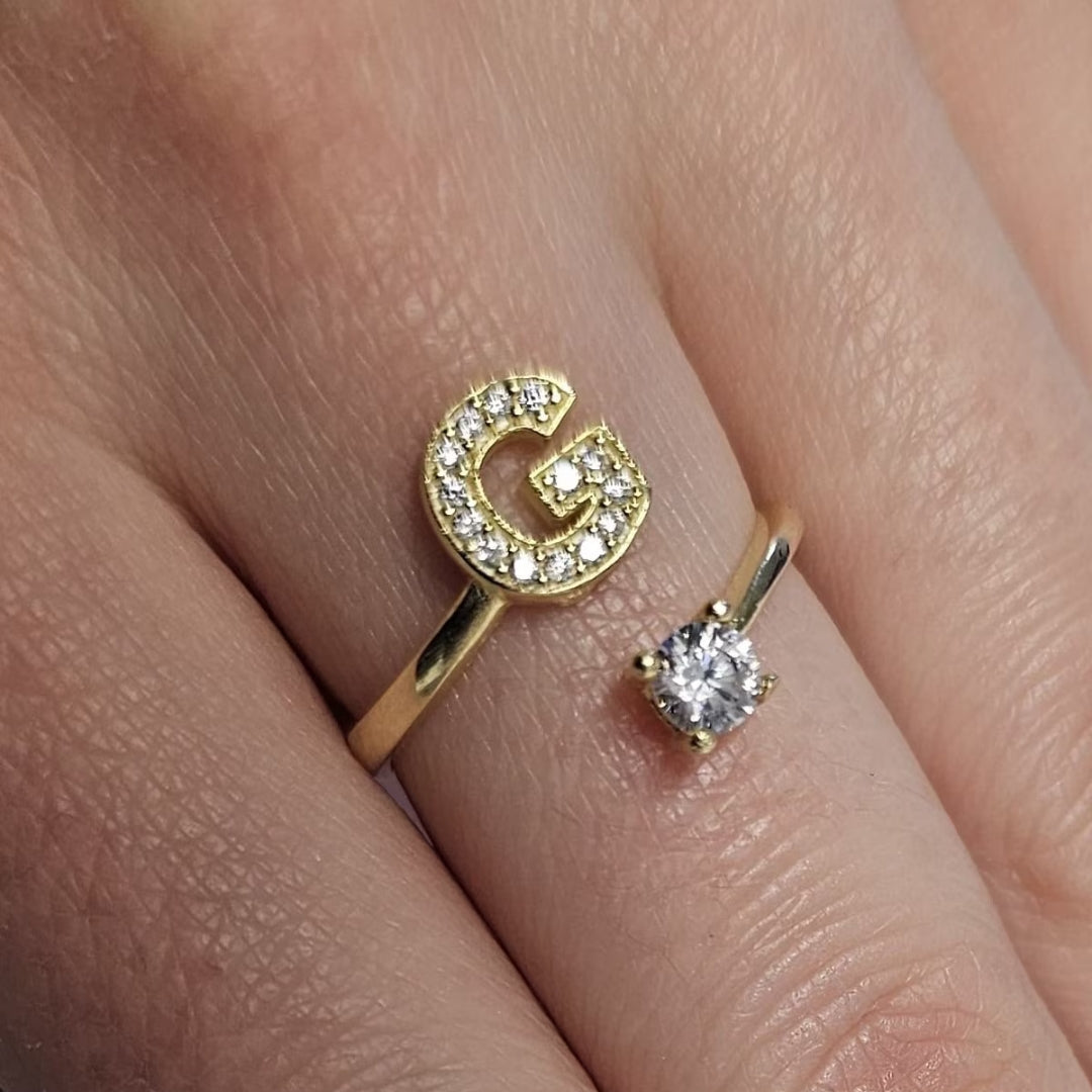 Inel reglabil cu initiala G din argint 925 suflat cu aur