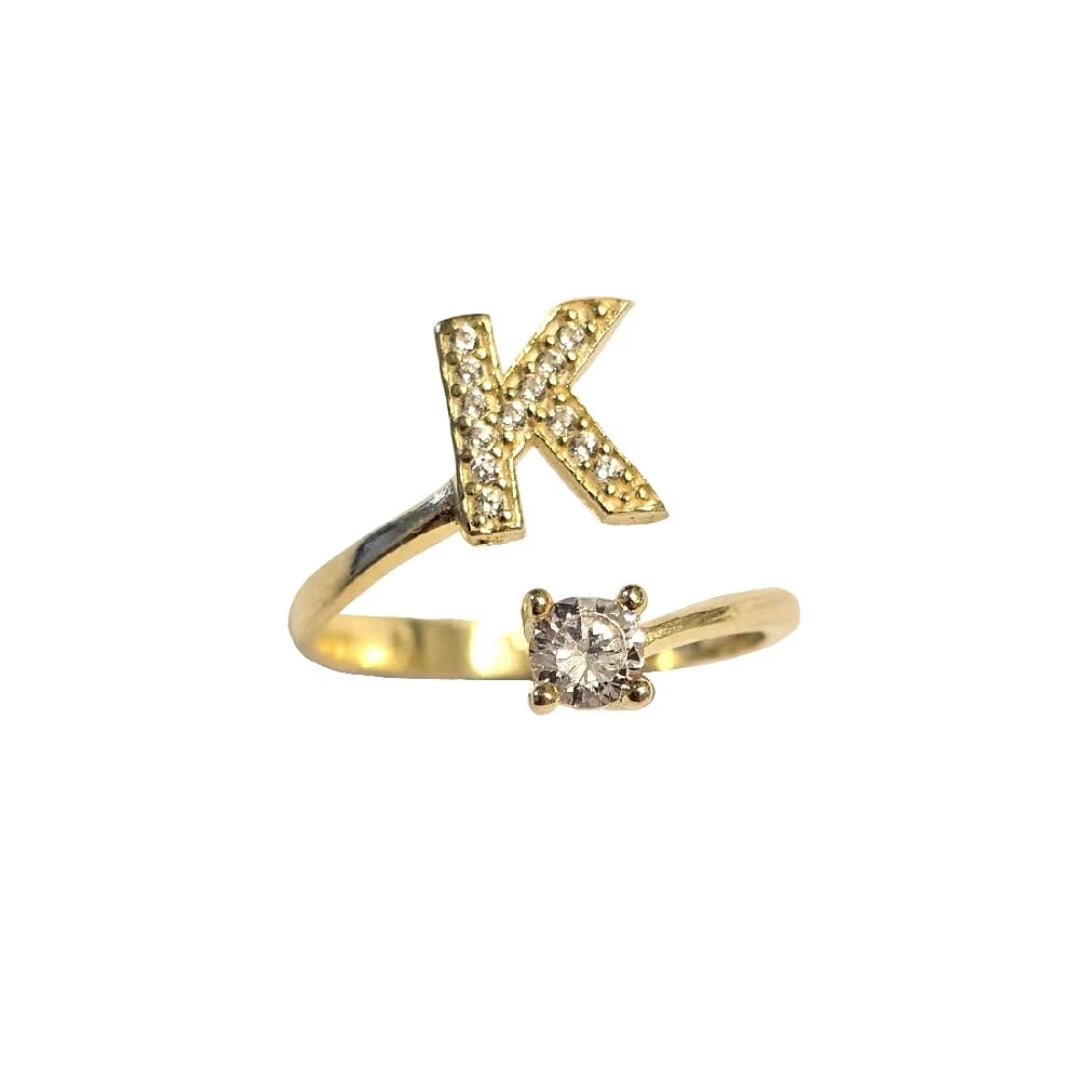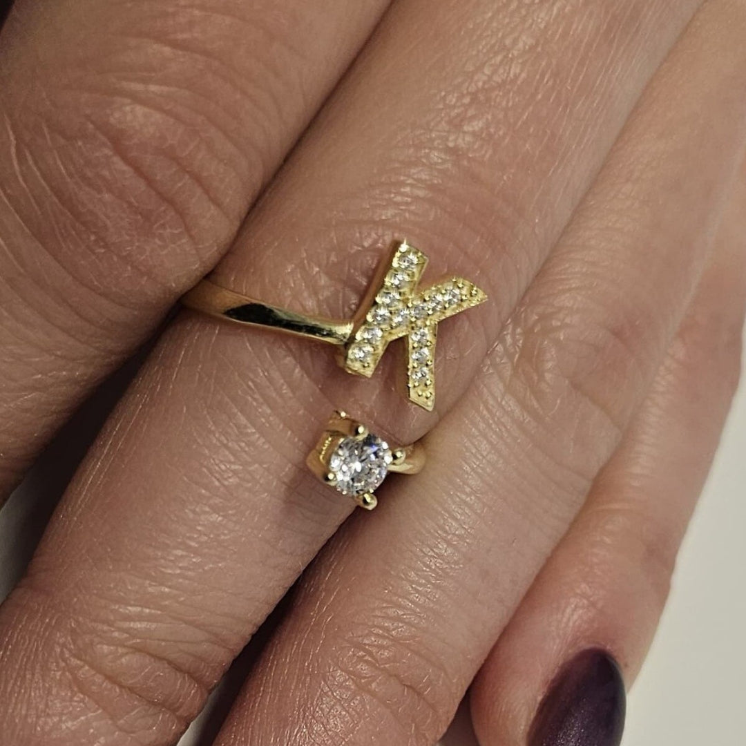 Inel reglabil cu initiala K din argint 925 suflat cu aur