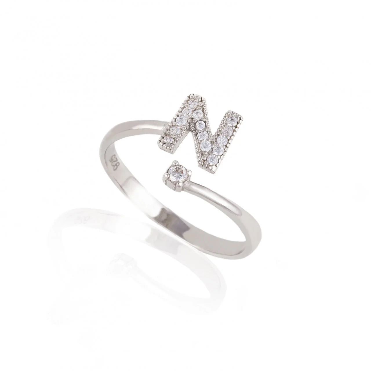 Inelul reglabil din argint cu initiala N face parte din eleganta colectie Infinity Bijoux. Stralucirea oferita de pietrele de zirconiu atent finisate si detaliile impecabile fac ca inelul sa fie potrivit oricarei ocazii. Material: Argint 925. Dimensiune element: 1.1 cm Diametru: 1.7 cm (dimensiune reglabila). De asemenea, veti primi inclus si cutiuta de cadou in care produsul dumneavoastra va fi ambalat cu multa grija.