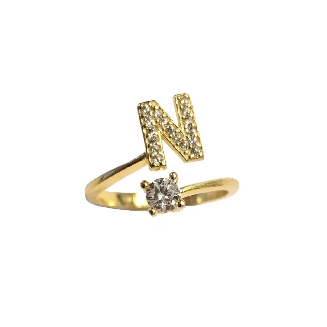 Inel reglabil cu initiala N din argint 925 suflat cu aur