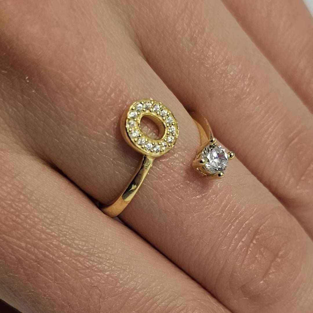 Inel reglabil cu initiala O din argint 925 suflat cu aur