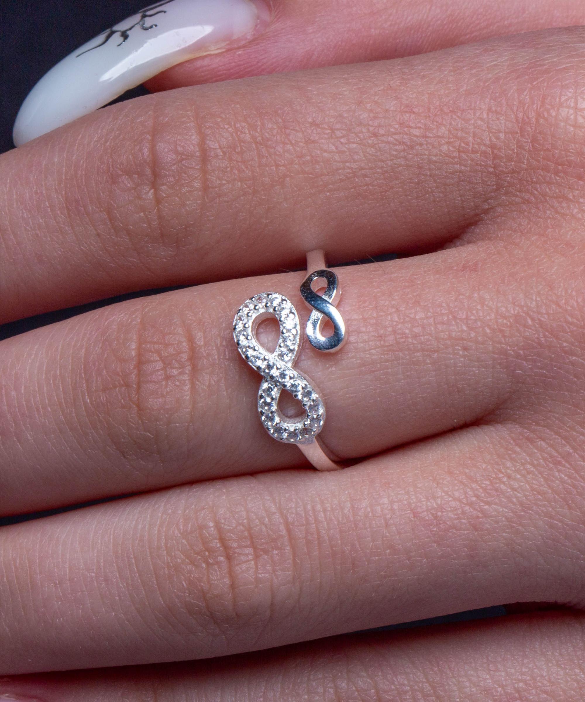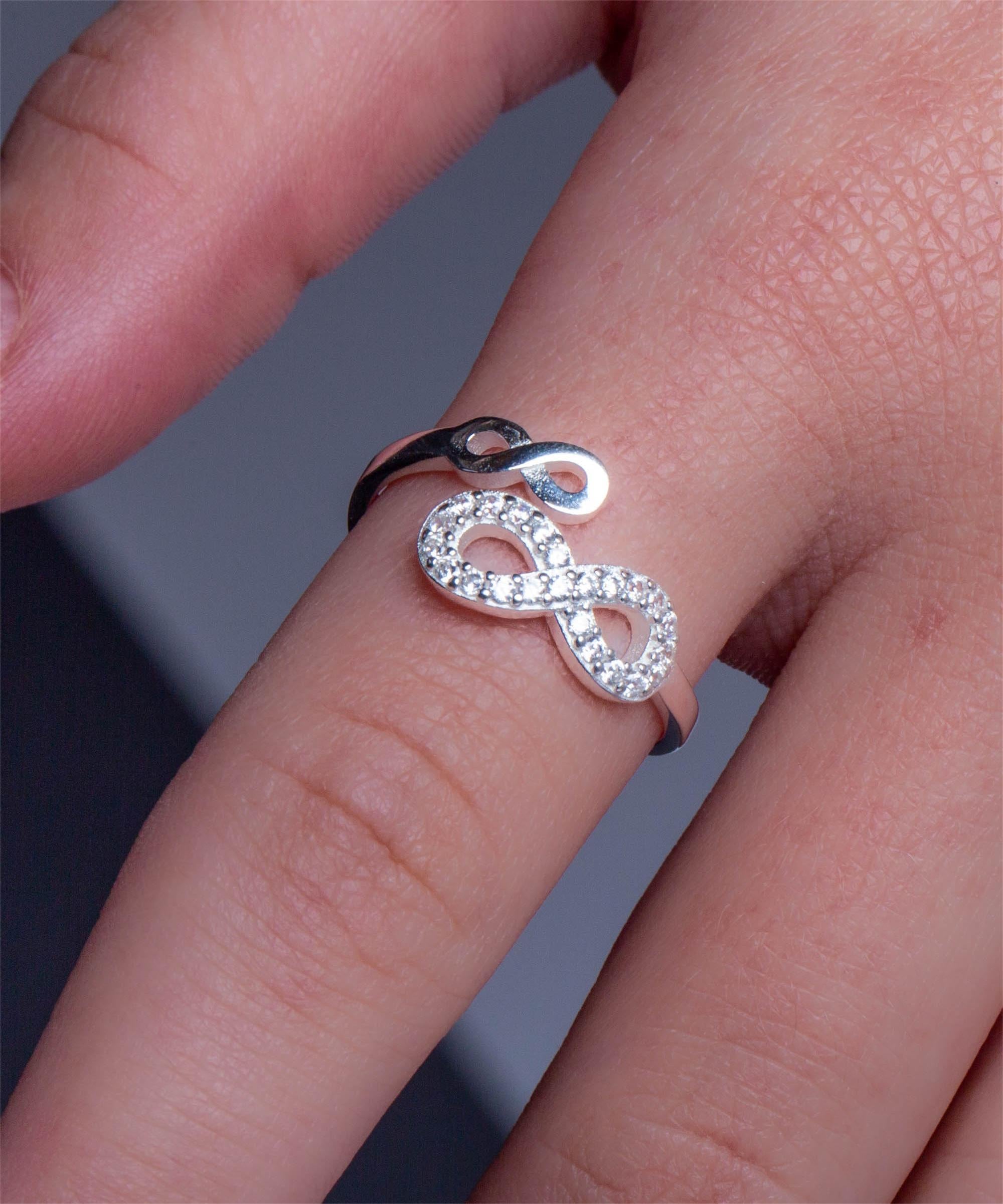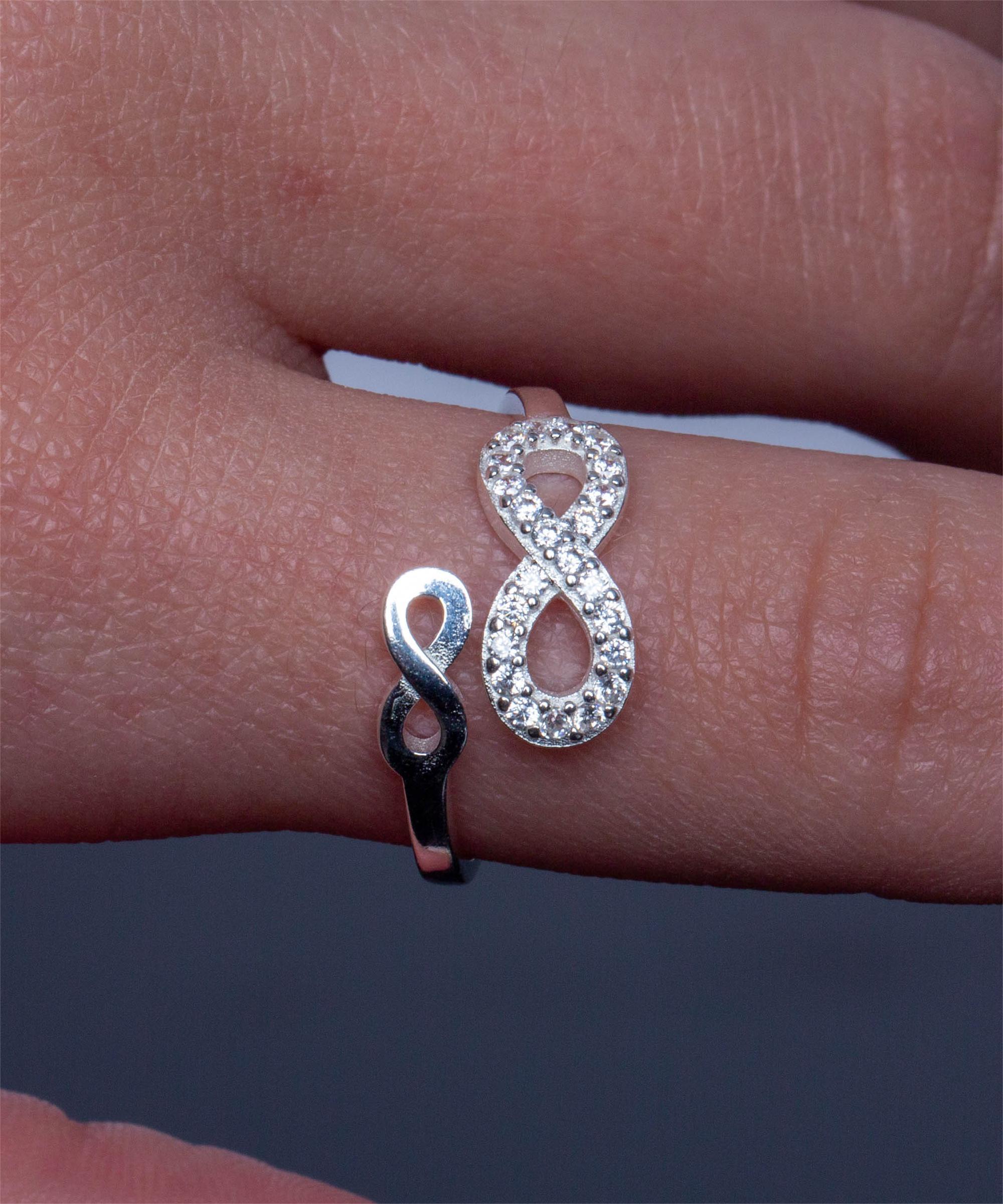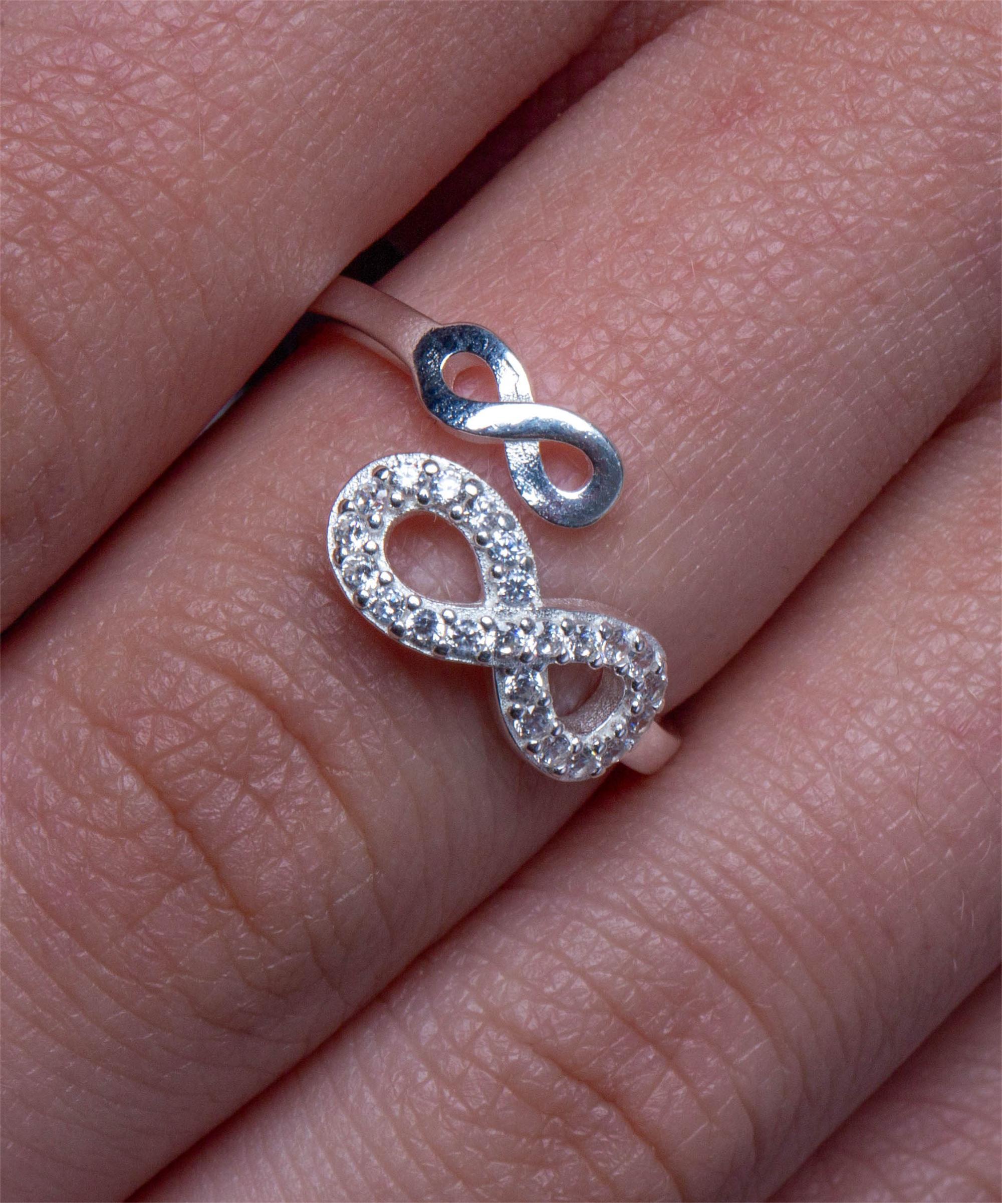 Inel reglabil din argint 925 Double Infinity face parte din eleganta colectie Infinity Bijoux. Stralucirea oferita de pietrele de zirconiu atent finisate si detaliile impecabile fac ca inelul sa fie potrivit oricarei ocazii. Material: Argint 925. Dimensiune element: 1.5 cm . Marime ajustabila. De asemenea, veti primi inclus si cutiuta de cadou in care produsul dumneavoastra va fi ambalat cu multa grija, alaturi de factura si certificatul de calitate.