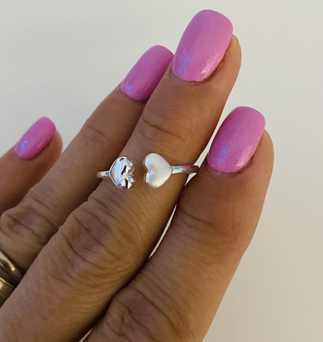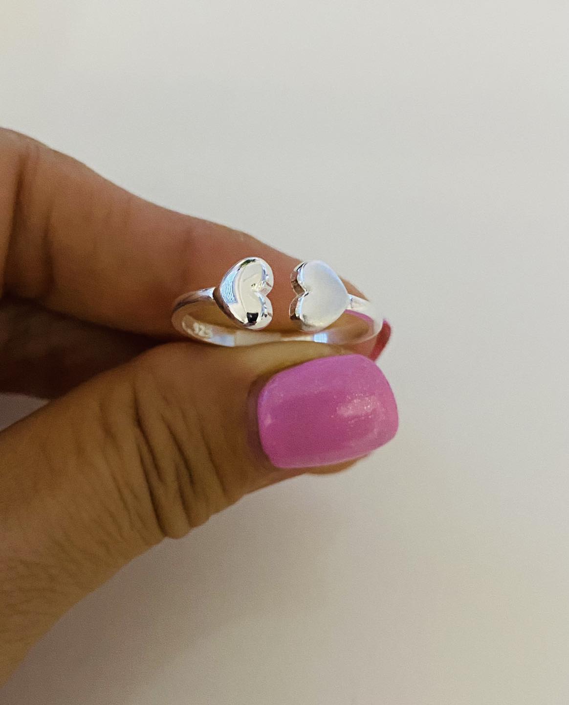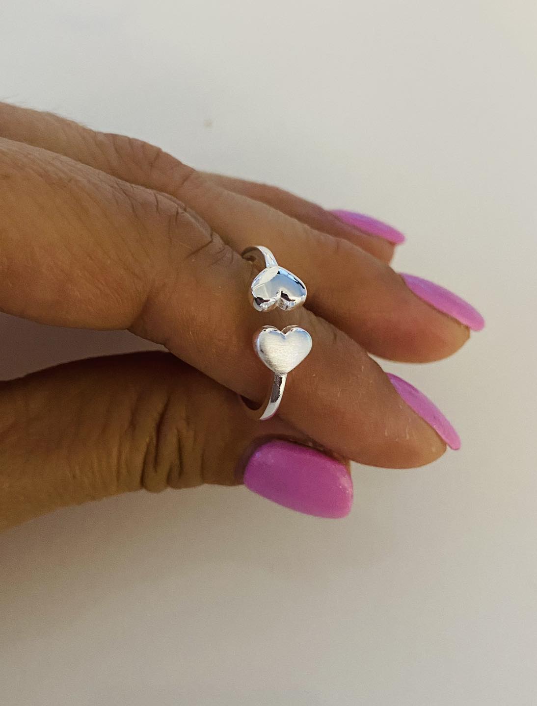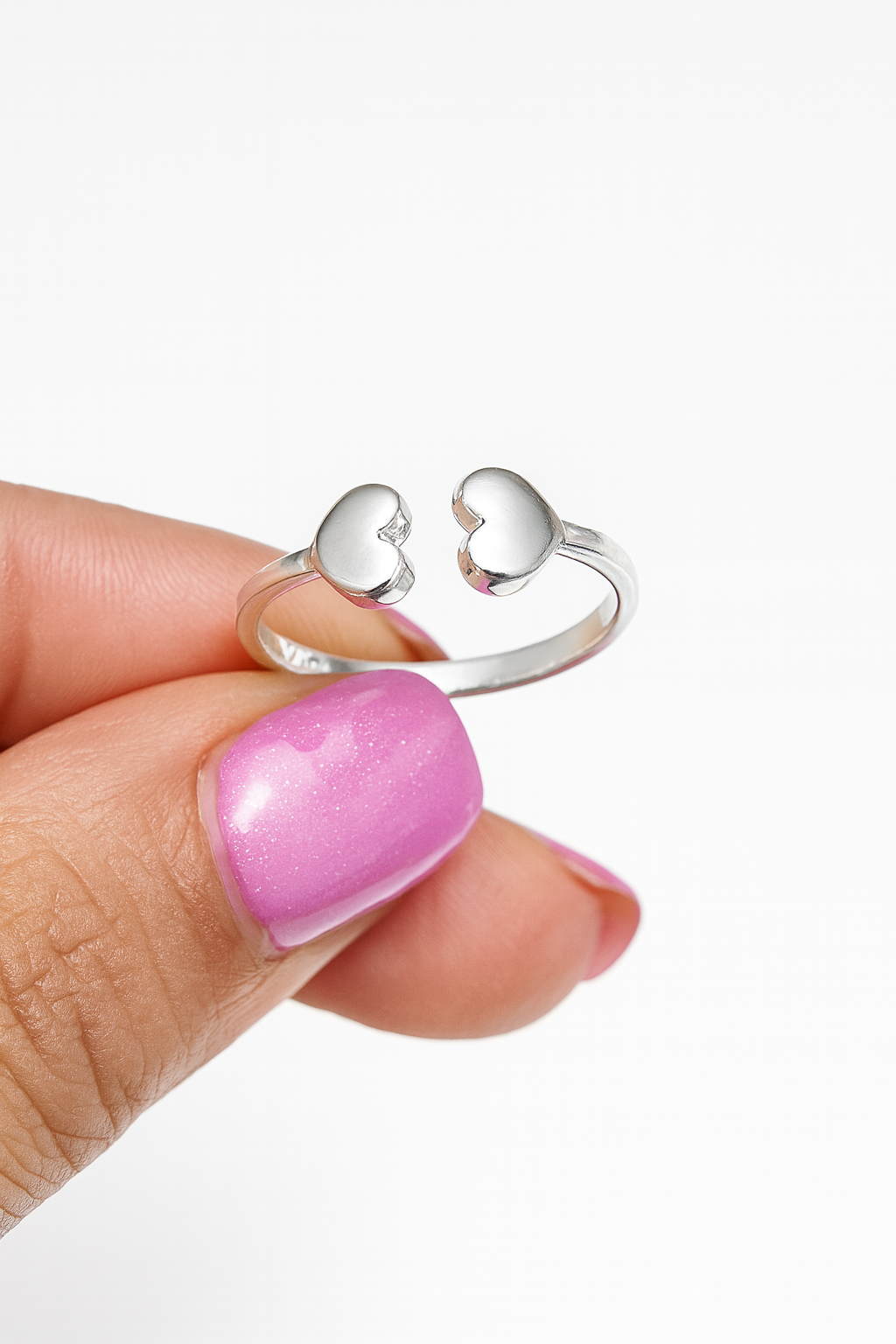 Inel Reglabil Duo Inimă din Argint 925, Bijuterie Elegantă și Versatilă