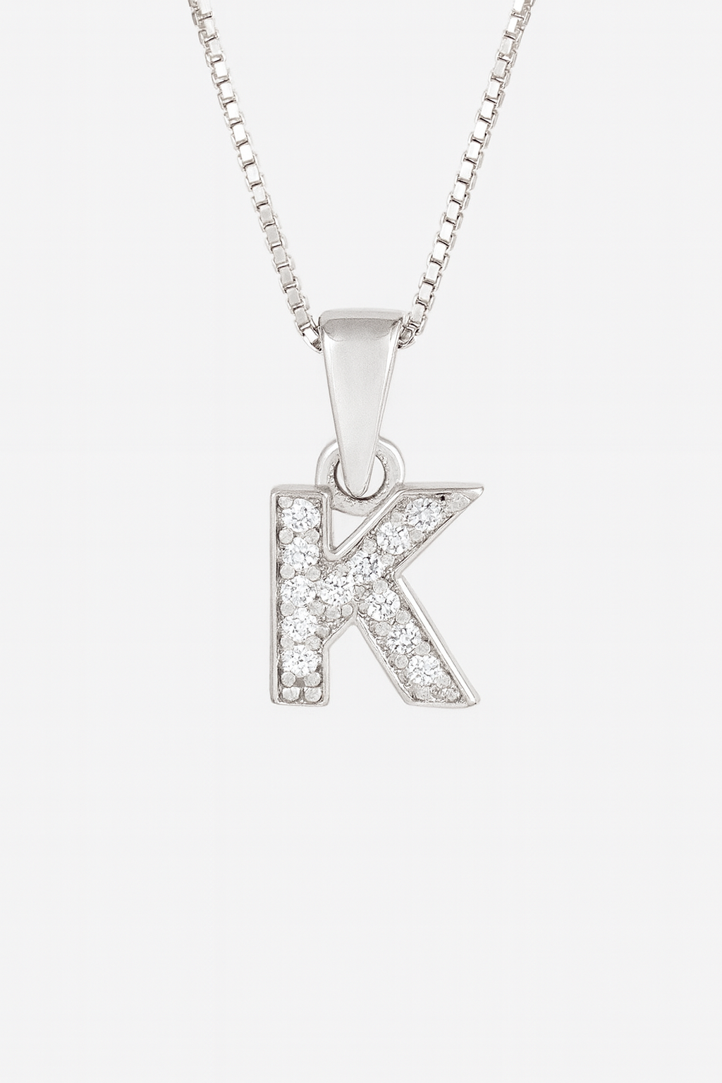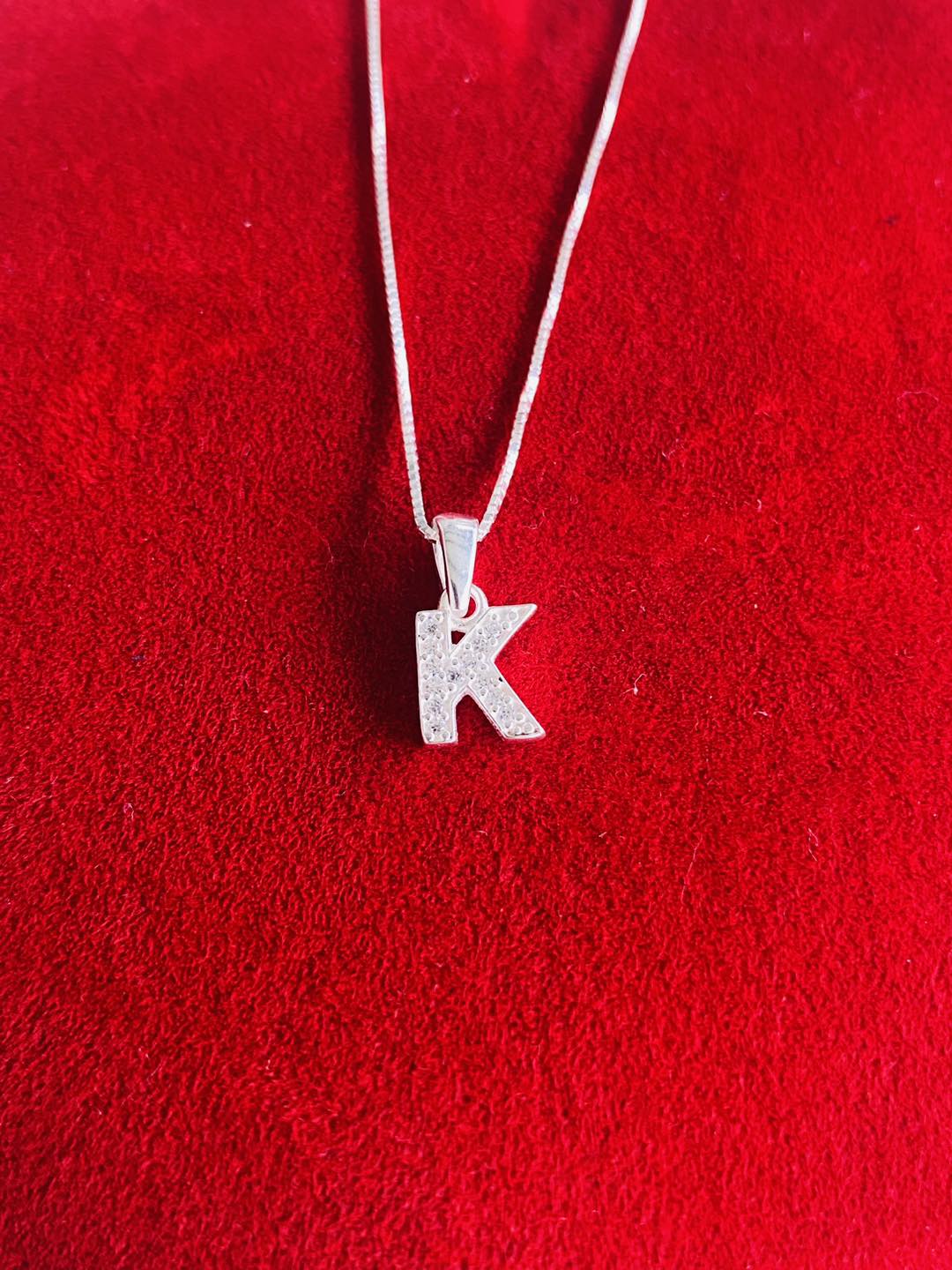 Lănțișor din argint 925 cu pandantiv litera K, lungime 45 cm, greutate 2.25 g, livrat în cutie de bijuterii cadou. Produs verificat și marcat ANPC, cu factură și certificat de conformitate inclus.